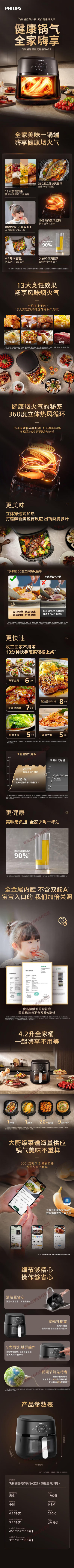 PHILIPS飞利浦高端多功能可视4.2L大容量空气炸锅(NA221/00)