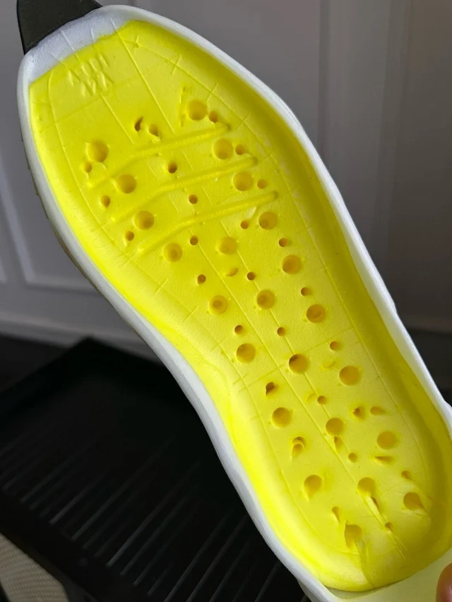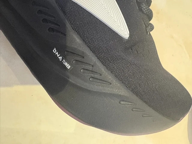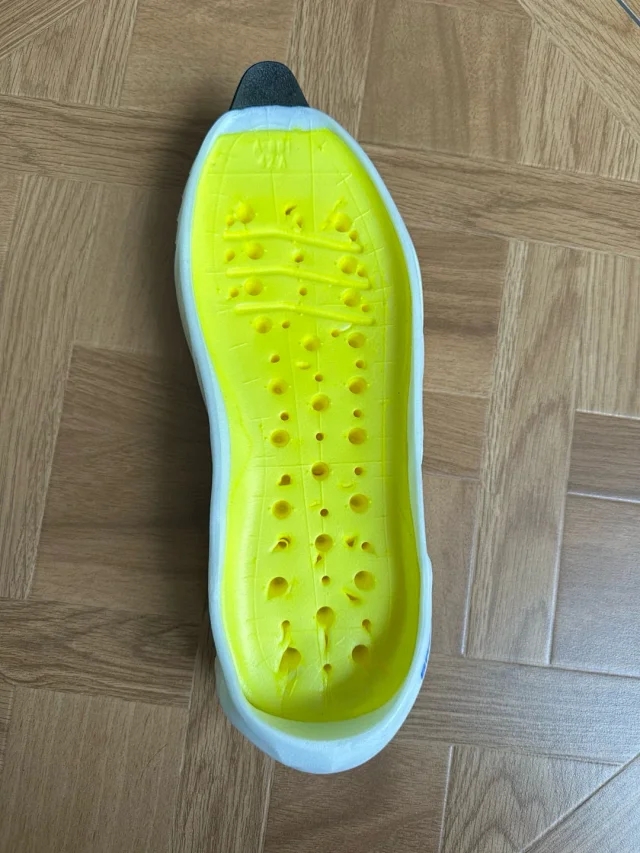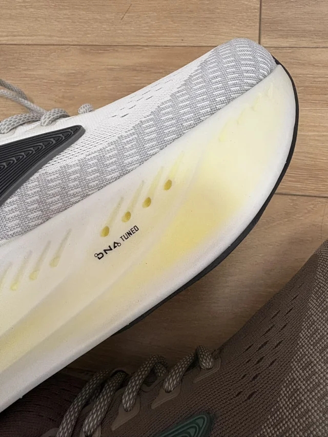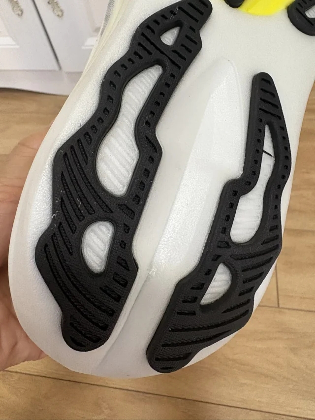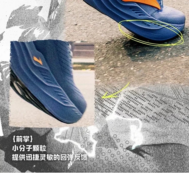 前掌小分子颗粒提供韧弹推进,后掌大分子颗粒,深不见底的缓震, 一体成型无拼接,脚感丝滑弹跳超舒适!对比传统双密度跑鞋,它更像“动态自适应”的智能缓震系统,跑得越久,越能感受到中底对不同步态的精准反馈。