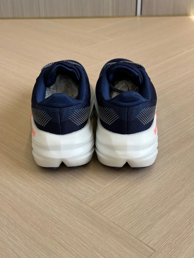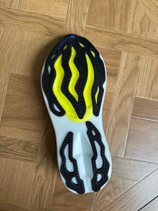 前掌6cm上翘+中底弧形设计,让落地到蹬伸的过渡顺滑如德芙,尤其适合前掌跑法的跑者,虽然是无板材跑鞋却感受到了助推感