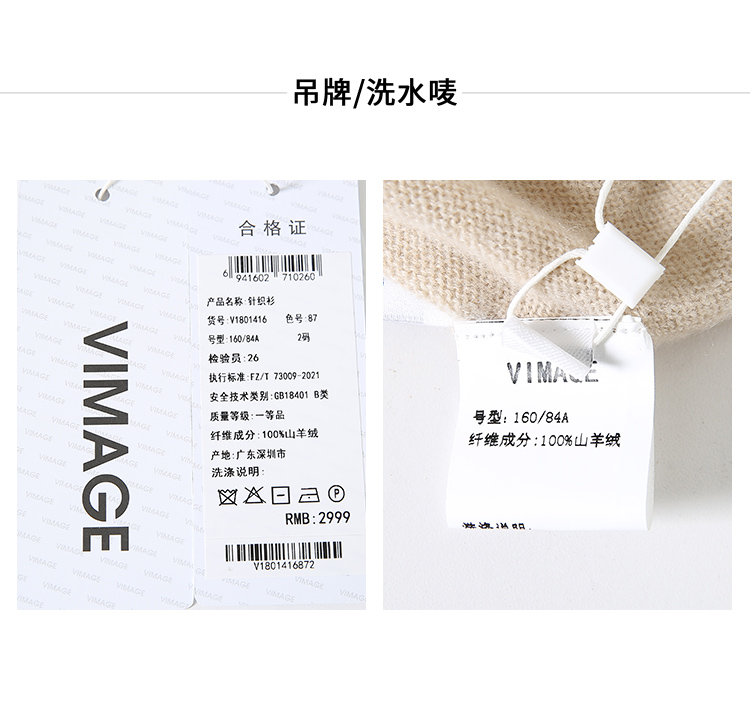 VIMAGE纬漫纪冬季新款100%山羊绒高领套头纯色修身针织衫V1801416