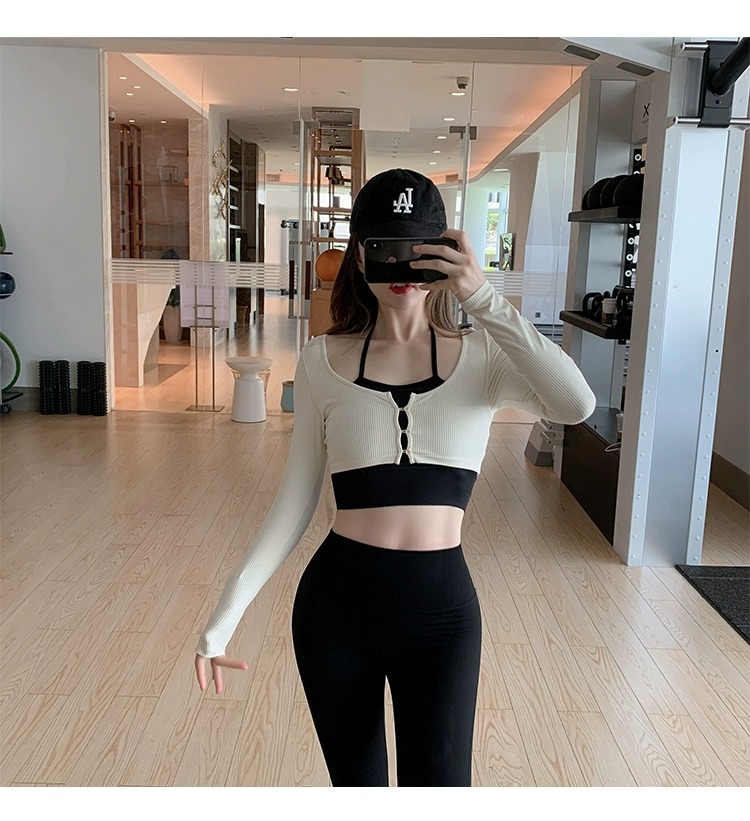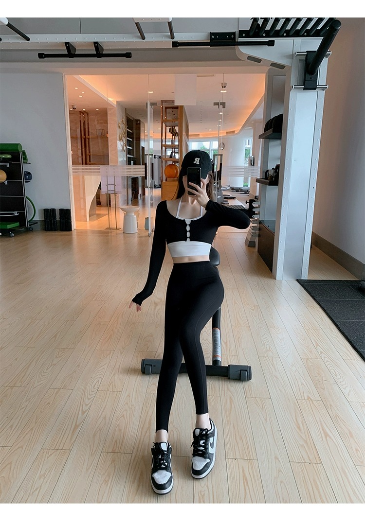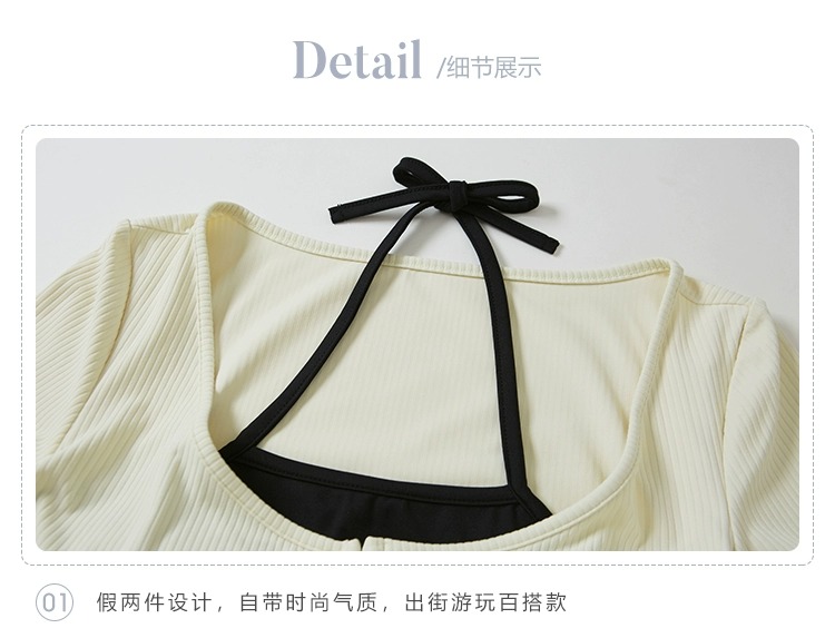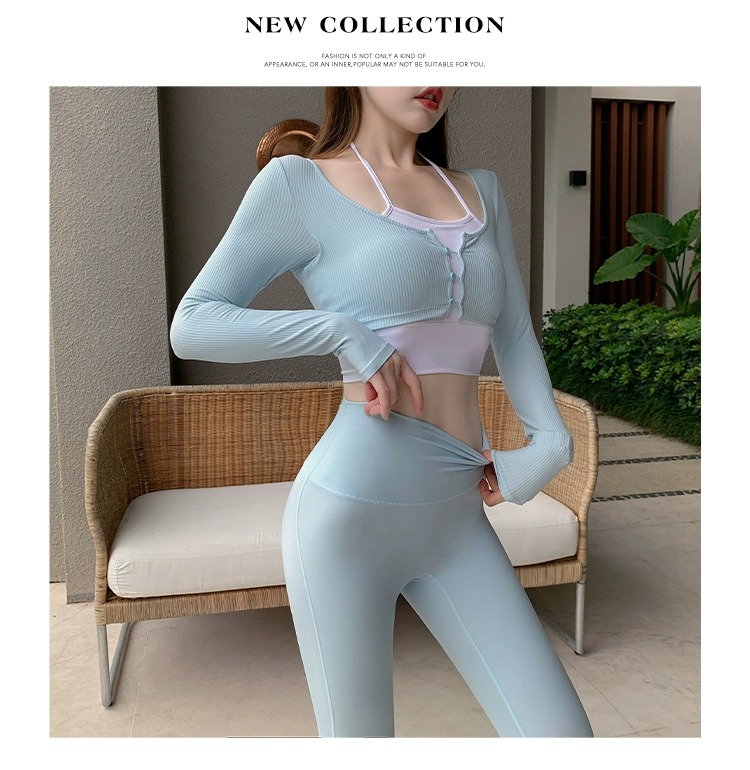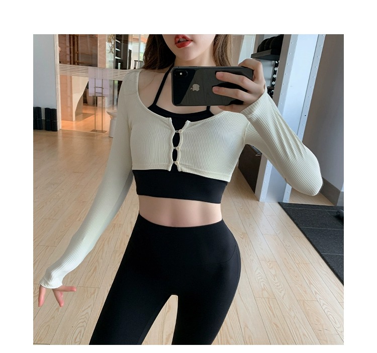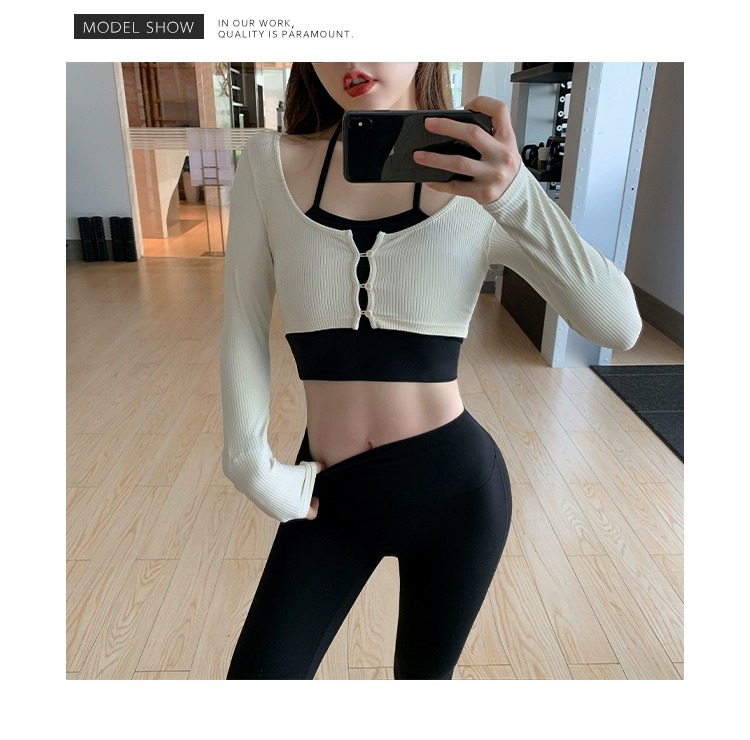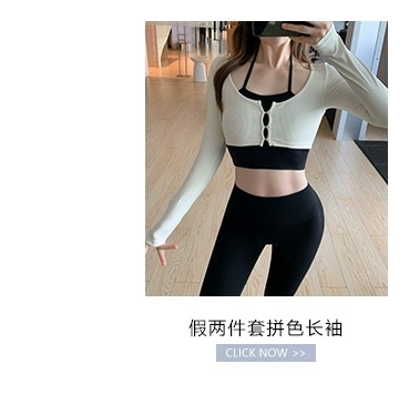 【限时秒】YOGACODE【火树银花系列】拼色挂脖假两件长袖瑜伽服YCDSL615(半固定一体杯)
