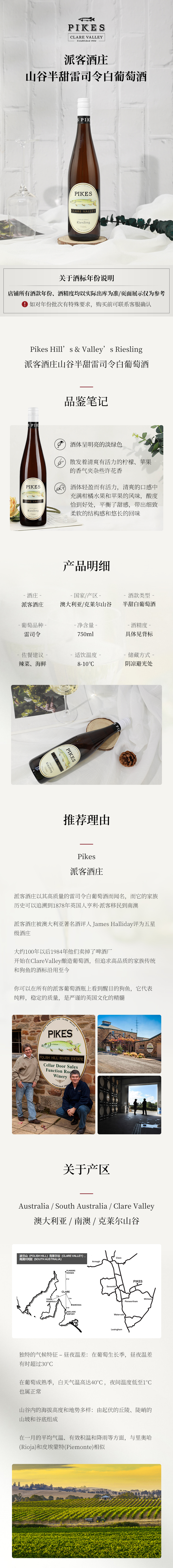派客酒庄山谷半甜雷司令白葡萄酒 澳大利亚 Pikes Hill’s & Valley’s Riesling