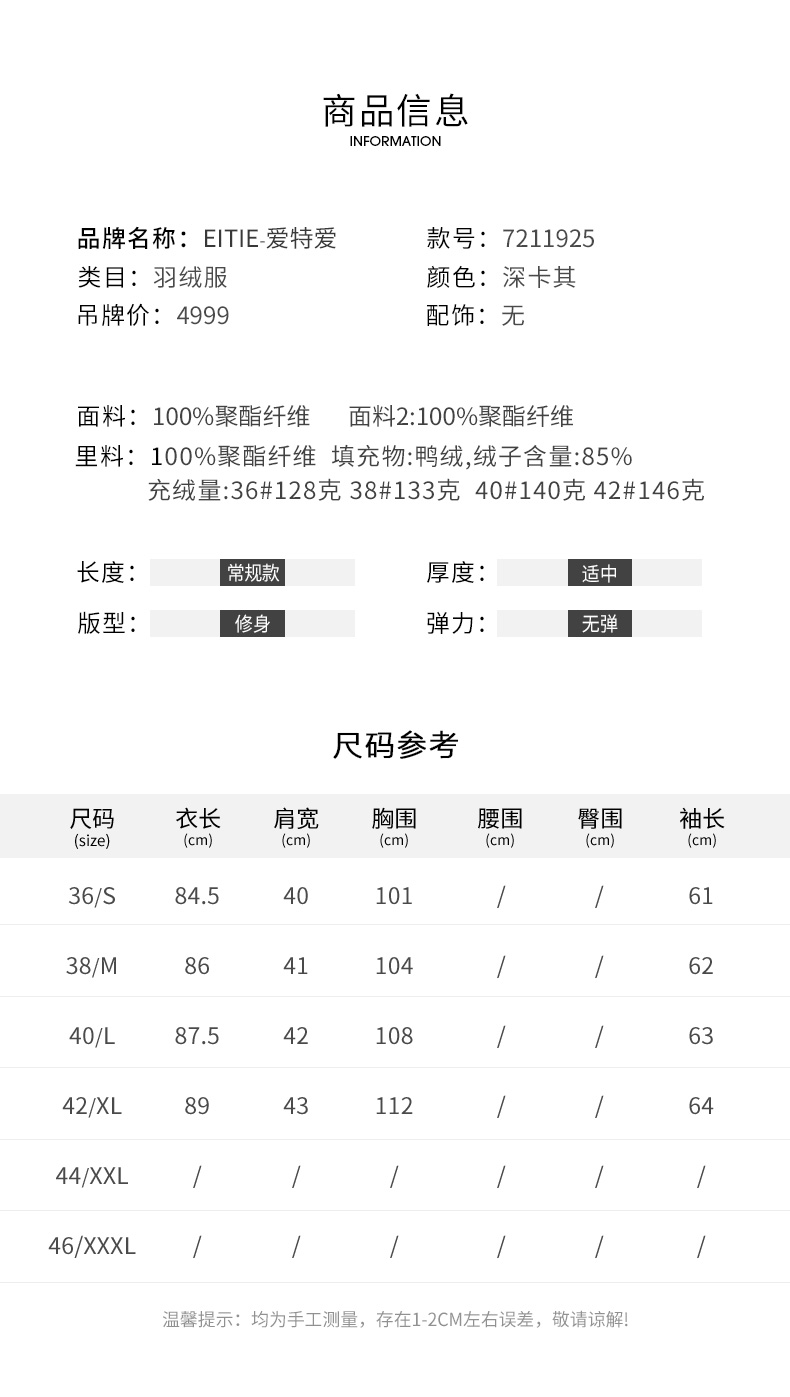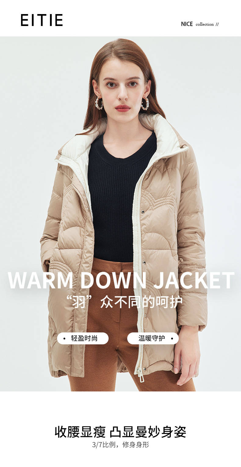 EITIE爱特爱冬季新款连帽保暖女中长款羽绒服7211925