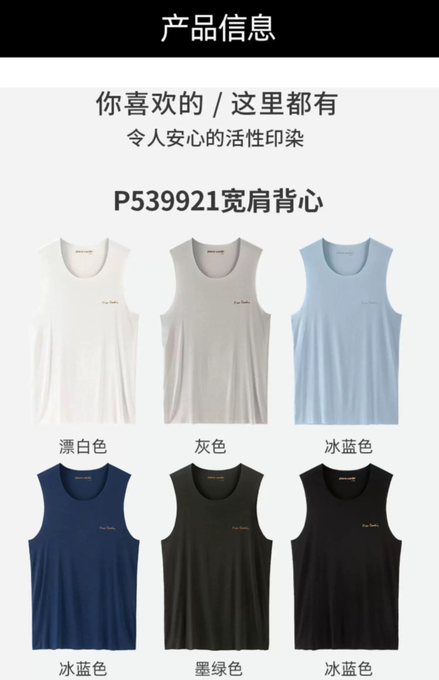 皮尔卡丹背心 内衣男士无痕莫代尔 修身透气打底宽肩背心 P539921