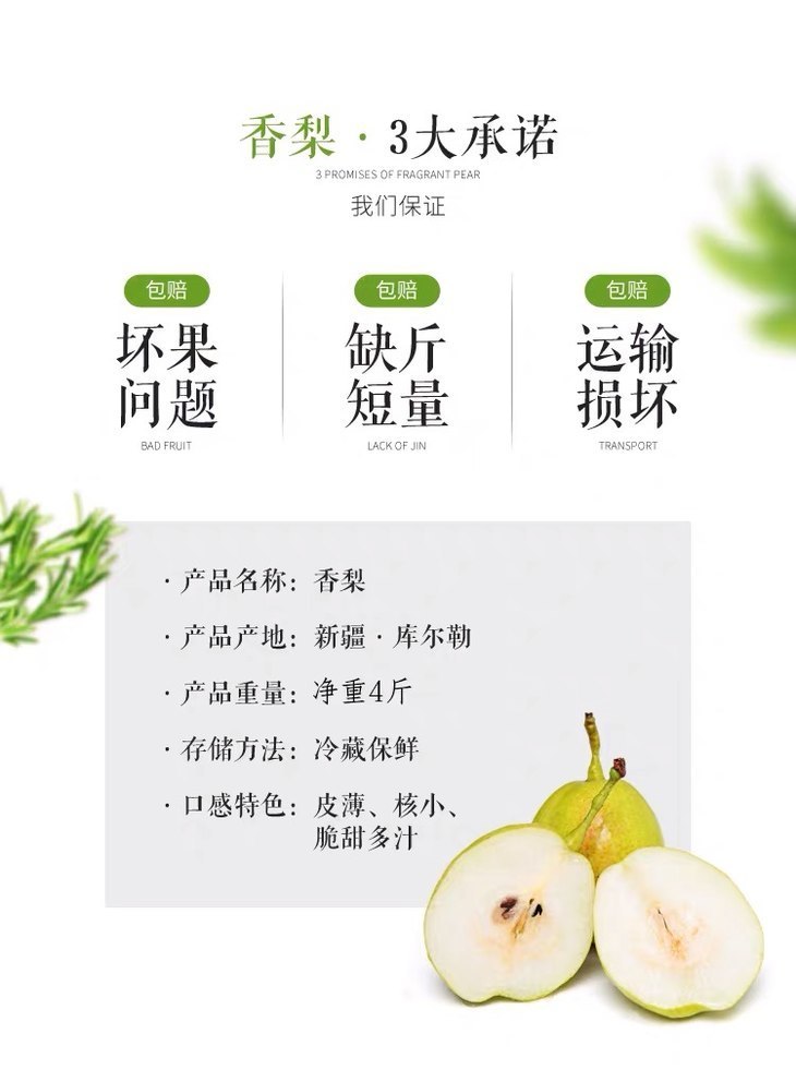 【果蔬精选】新疆库尔勒香梨 西域圣果 皮薄肉细 汁多味甜 核小无渣 生津解渴