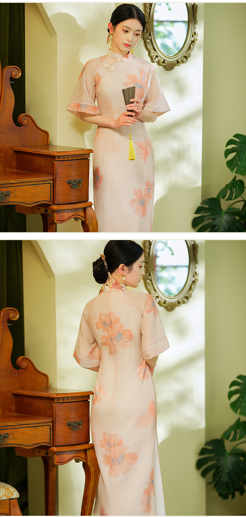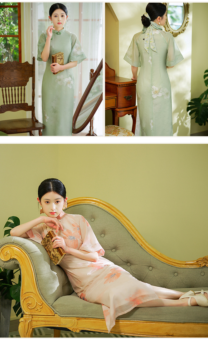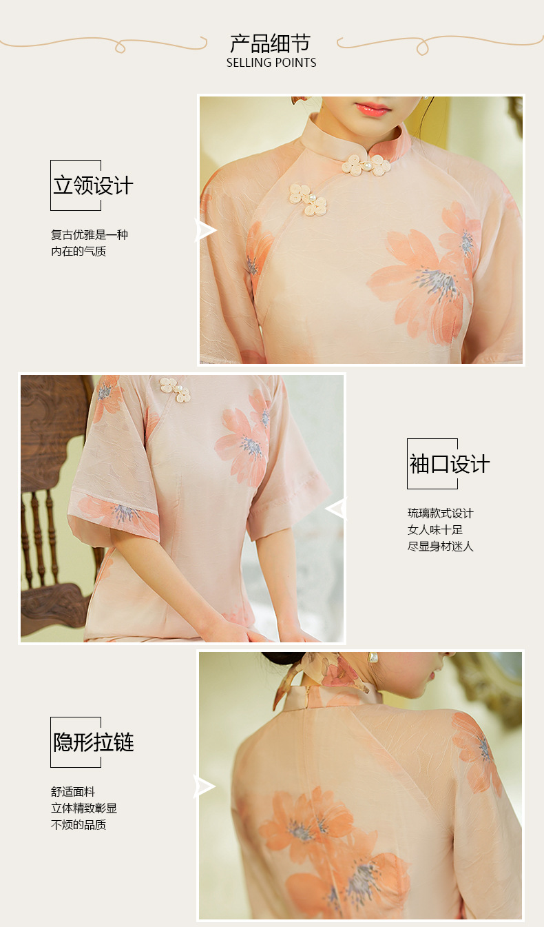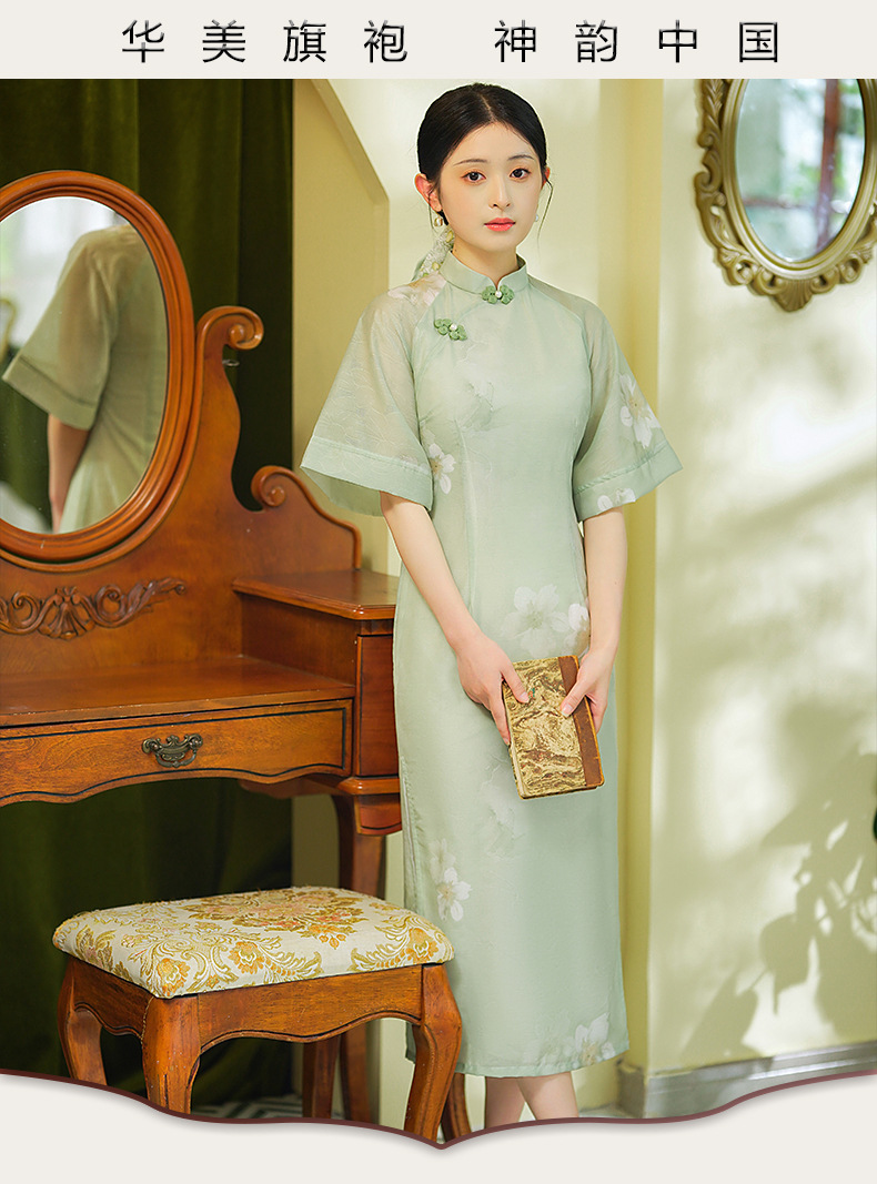 新款天丝提花复古老上海旗袍民国风宴会走秀旗袍HYM23425