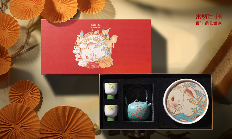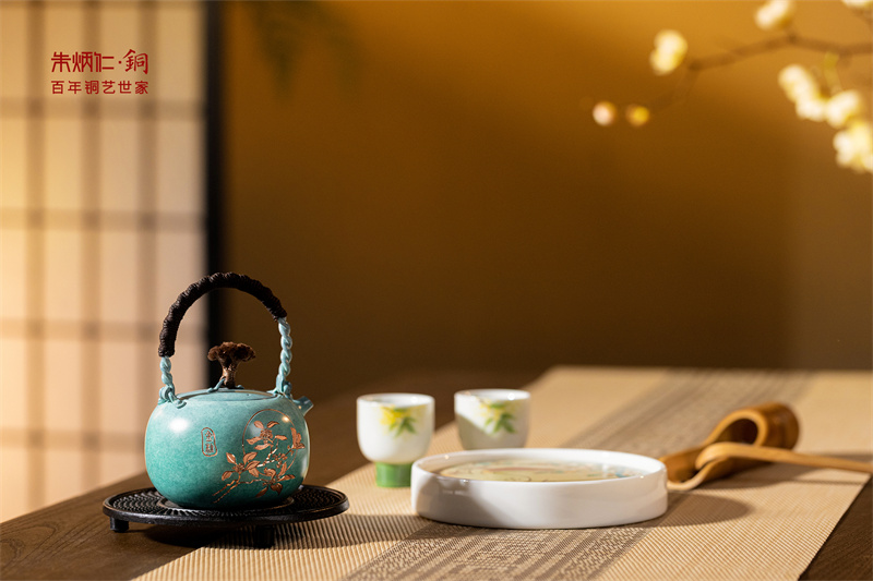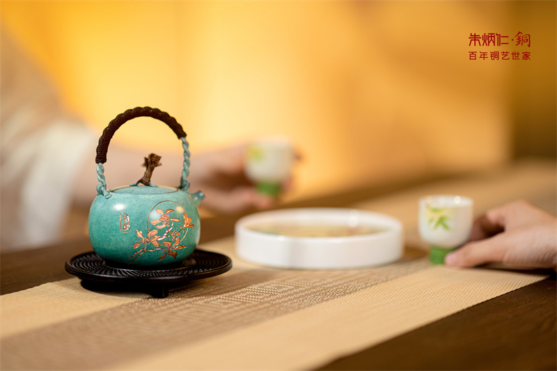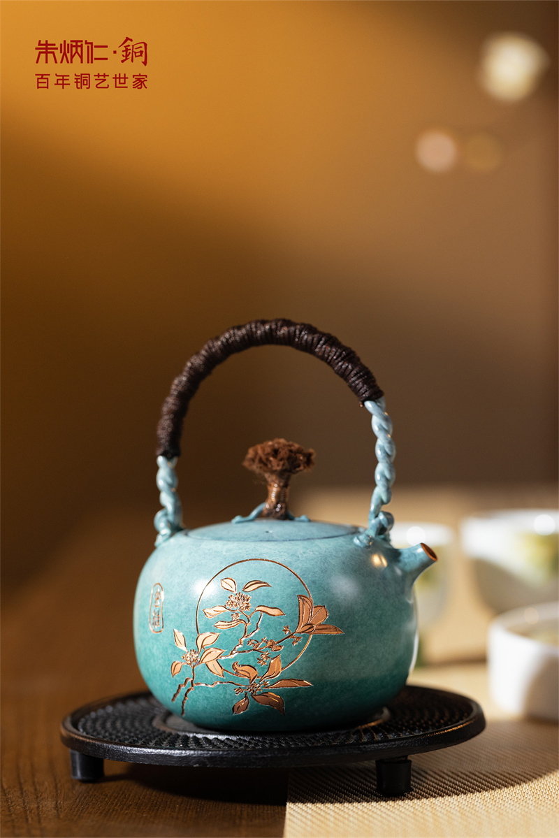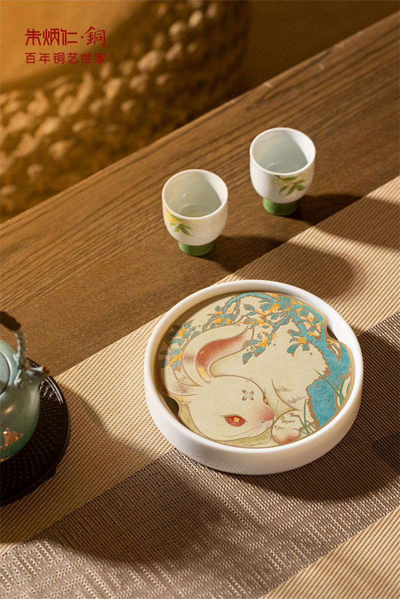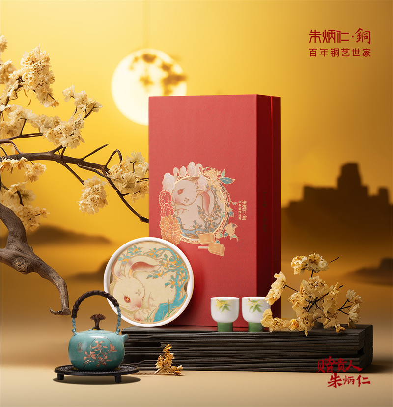 朱炳仁·铜 月见喜乐 中秋茶礼 纯手工錾刻金桂
