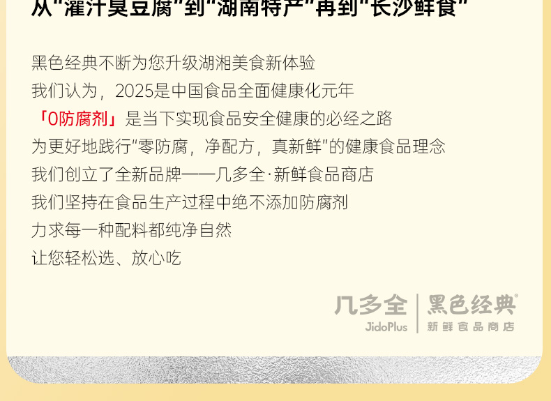 黑色经典湖南特产商城是长沙著名特色小吃“黑色经典长沙臭豆腐”旗下的线上官方商城。黑色经典面向全国,以长沙臭豆腐为核心,辐射覆盖湖南本土特色美食全系列产品,并对所有产品的生产工艺及包装进行了独特的改良。