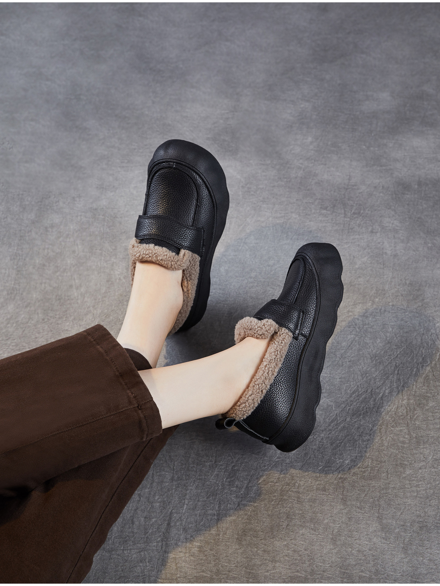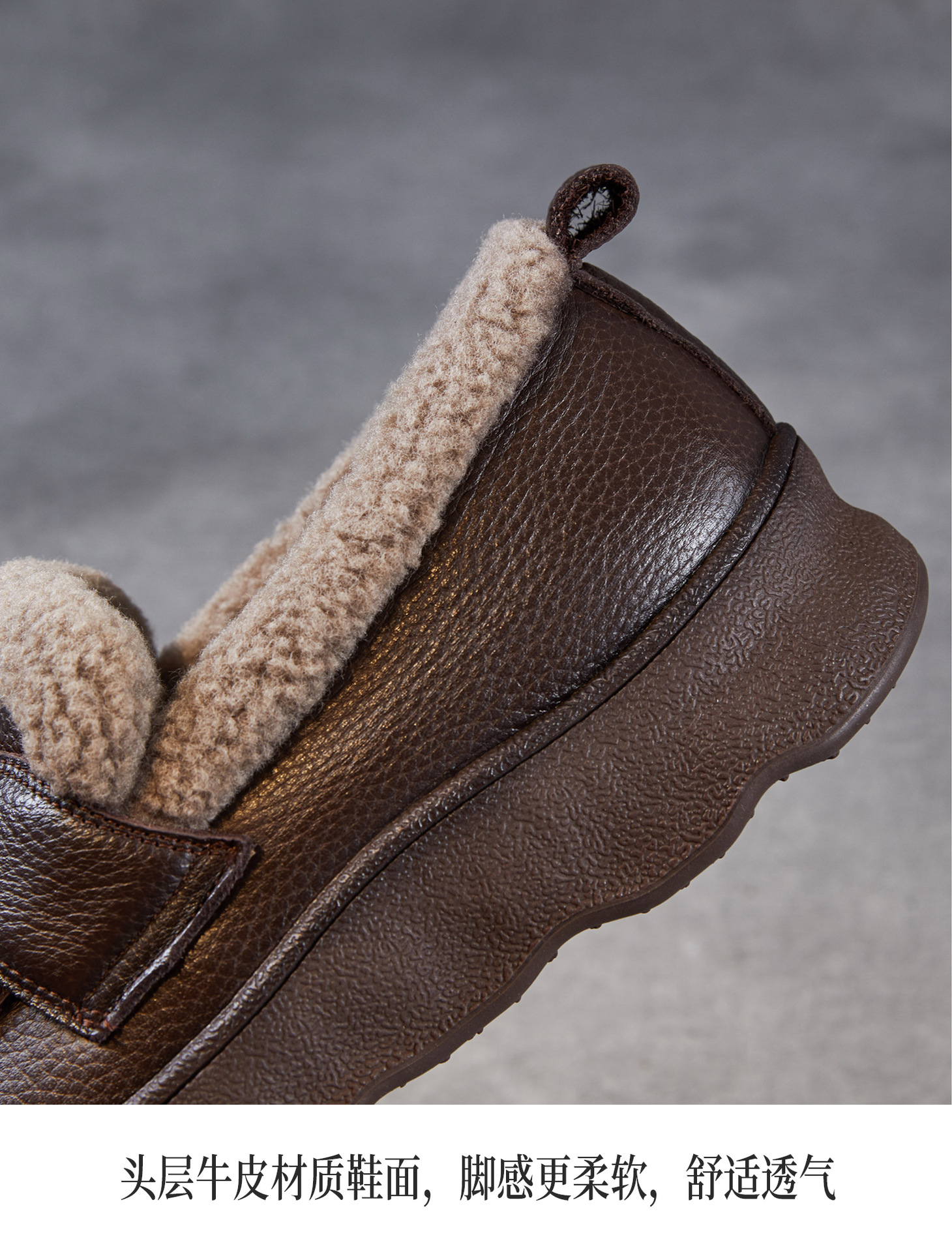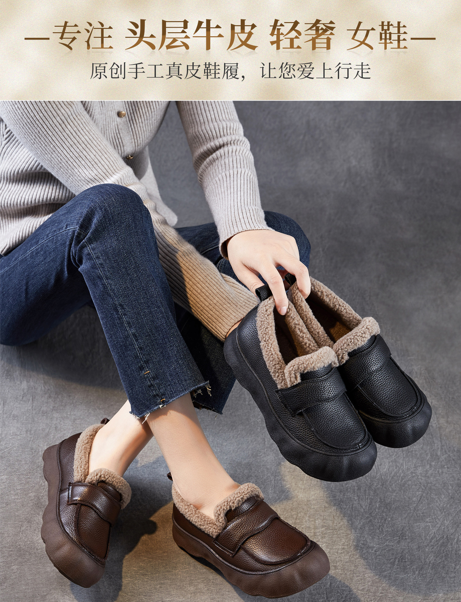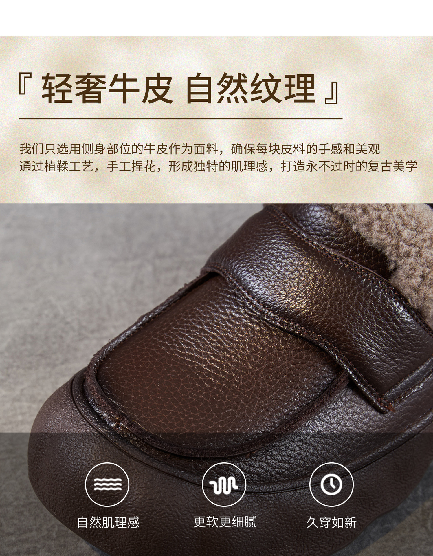 头层牛皮一脚蹬毛毛口鞋,平底休闲棉鞋软底加绒保暖皮鞋ZM258719