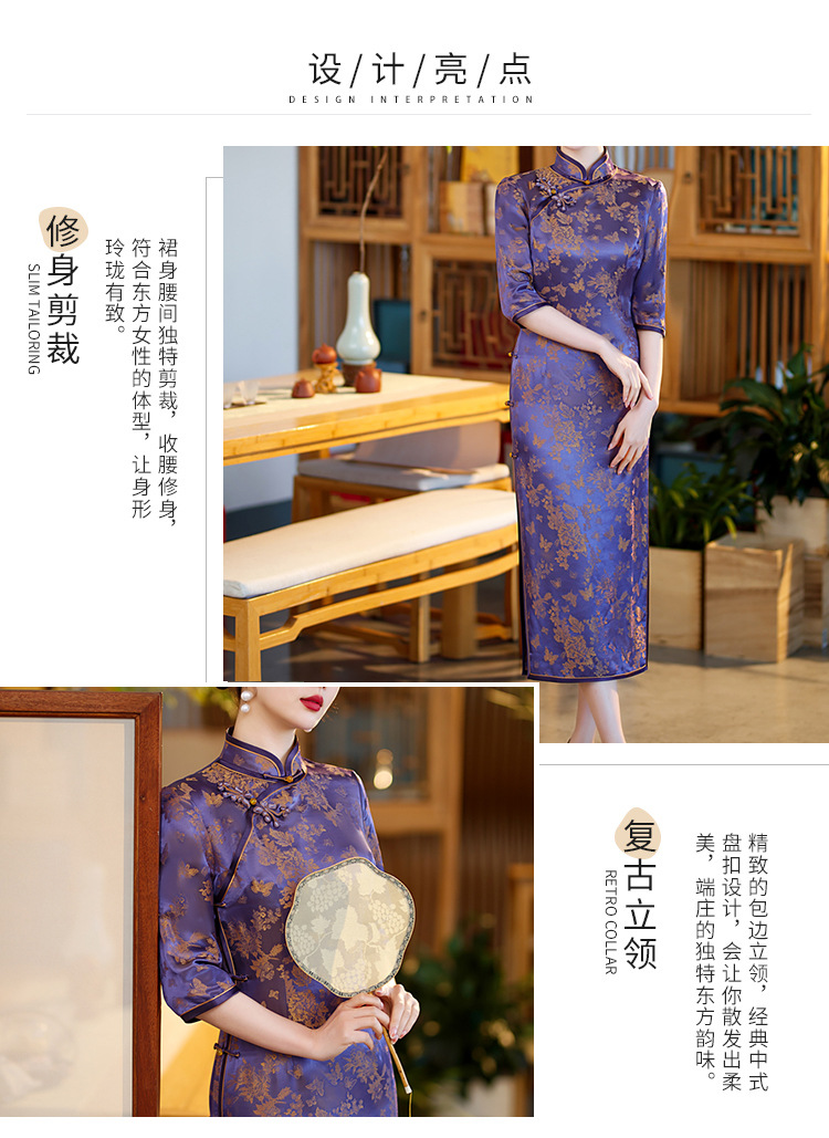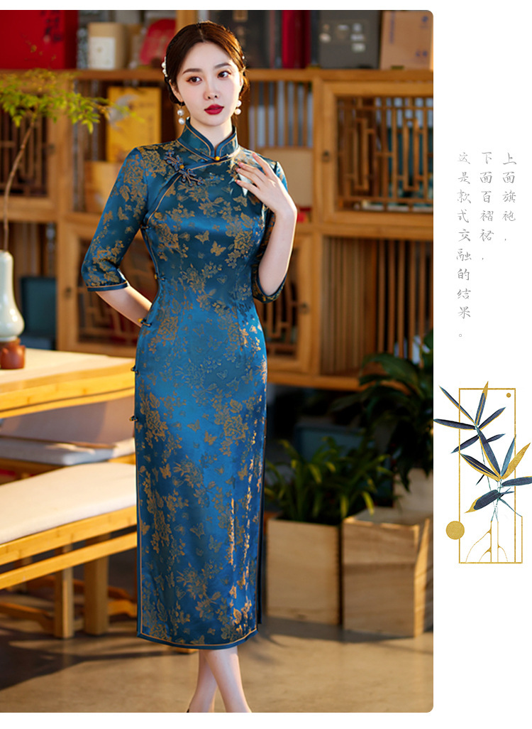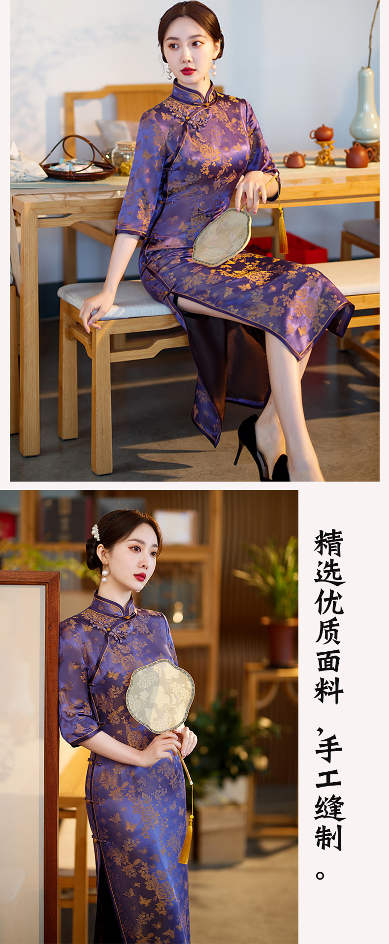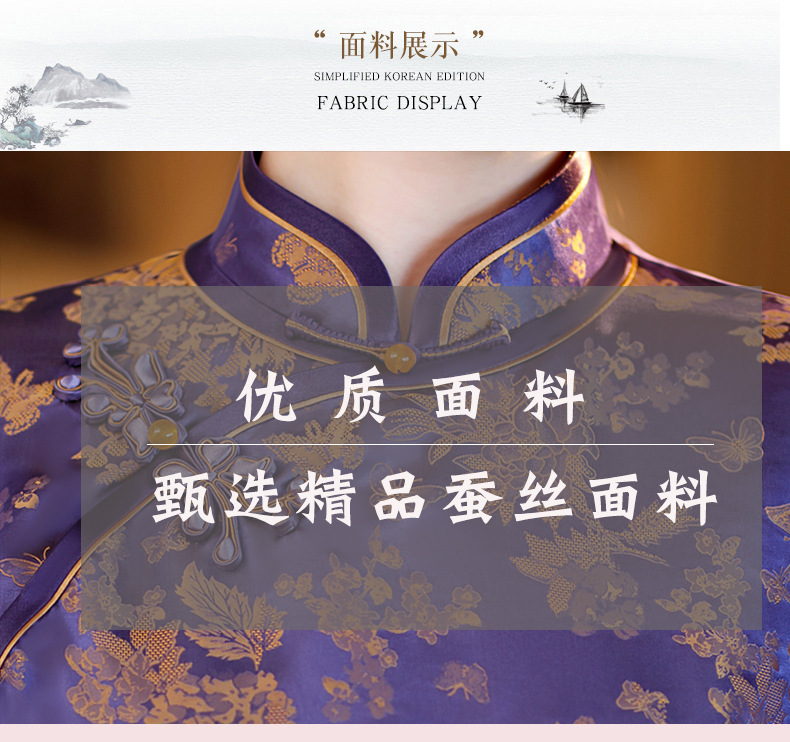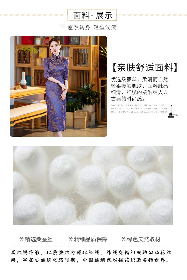 桑蚕丝内外真丝显瘦遮肚改良版全开襟旗袍裙HQ-171