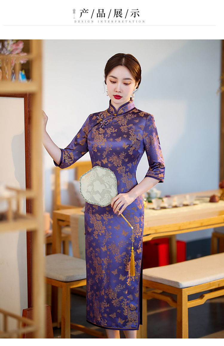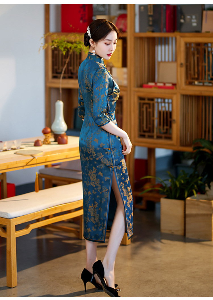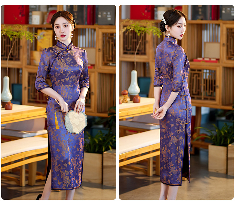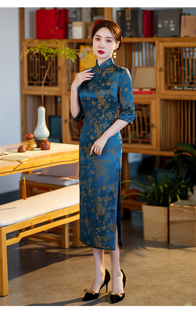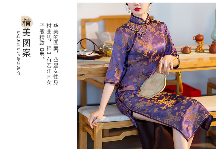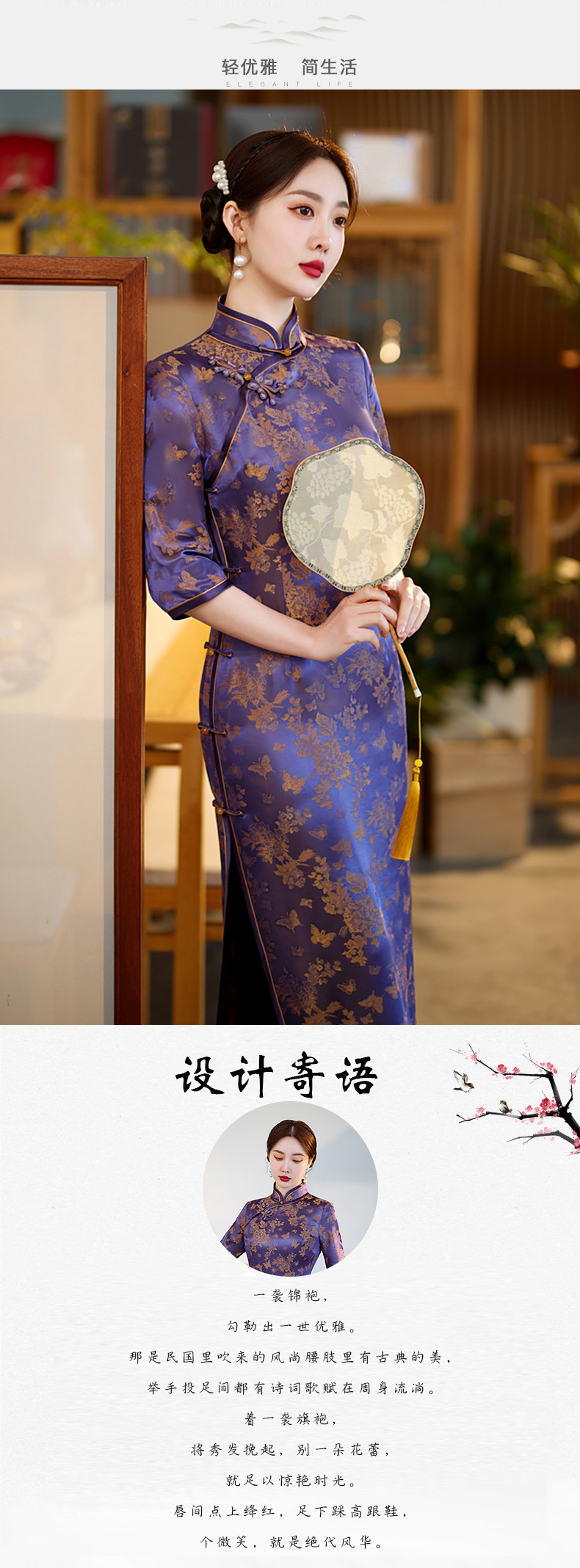桑蚕丝内外真丝显瘦遮肚改良版全开襟旗袍裙HQ-171