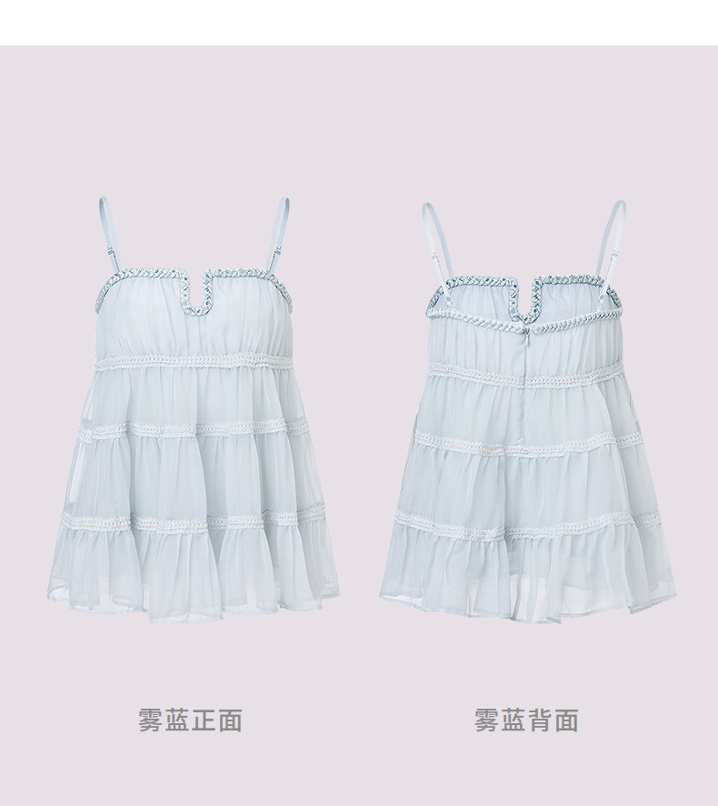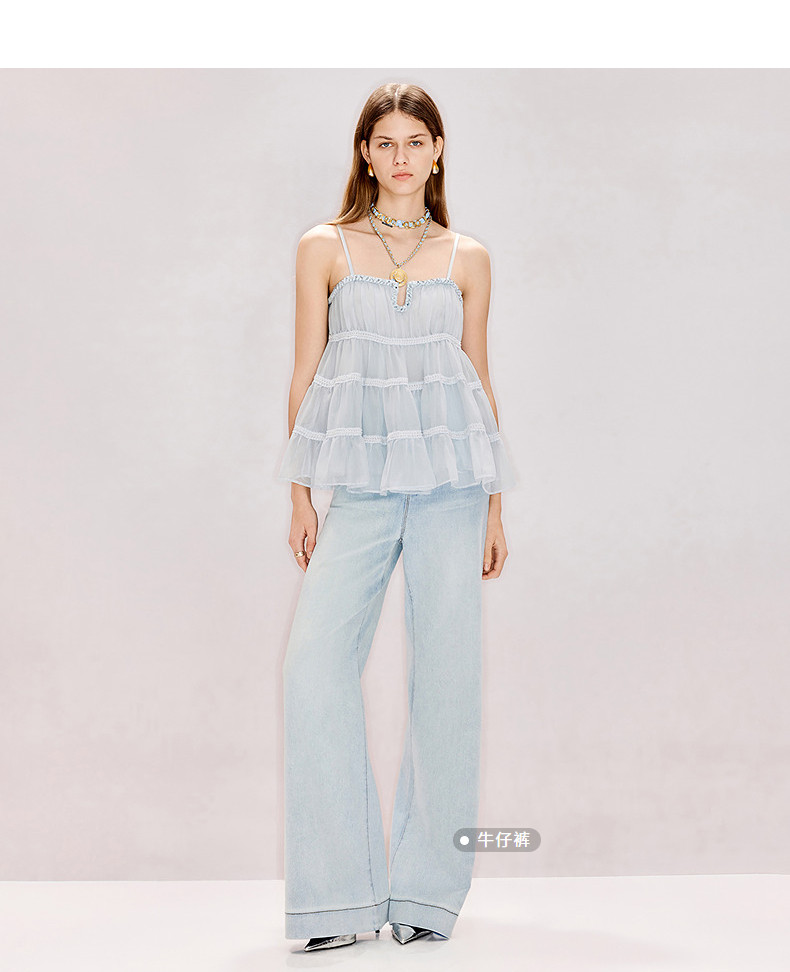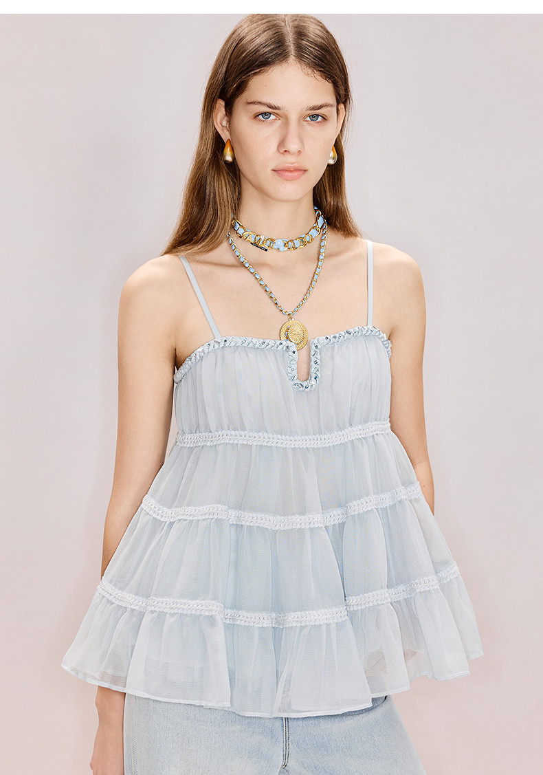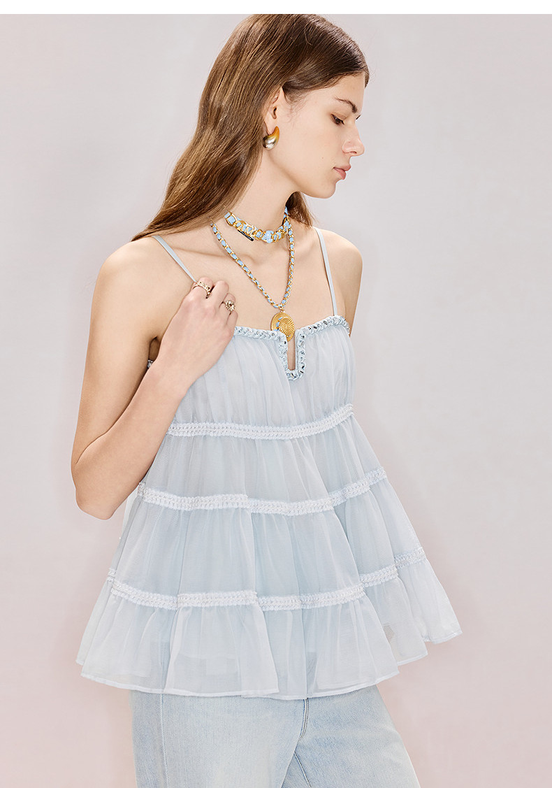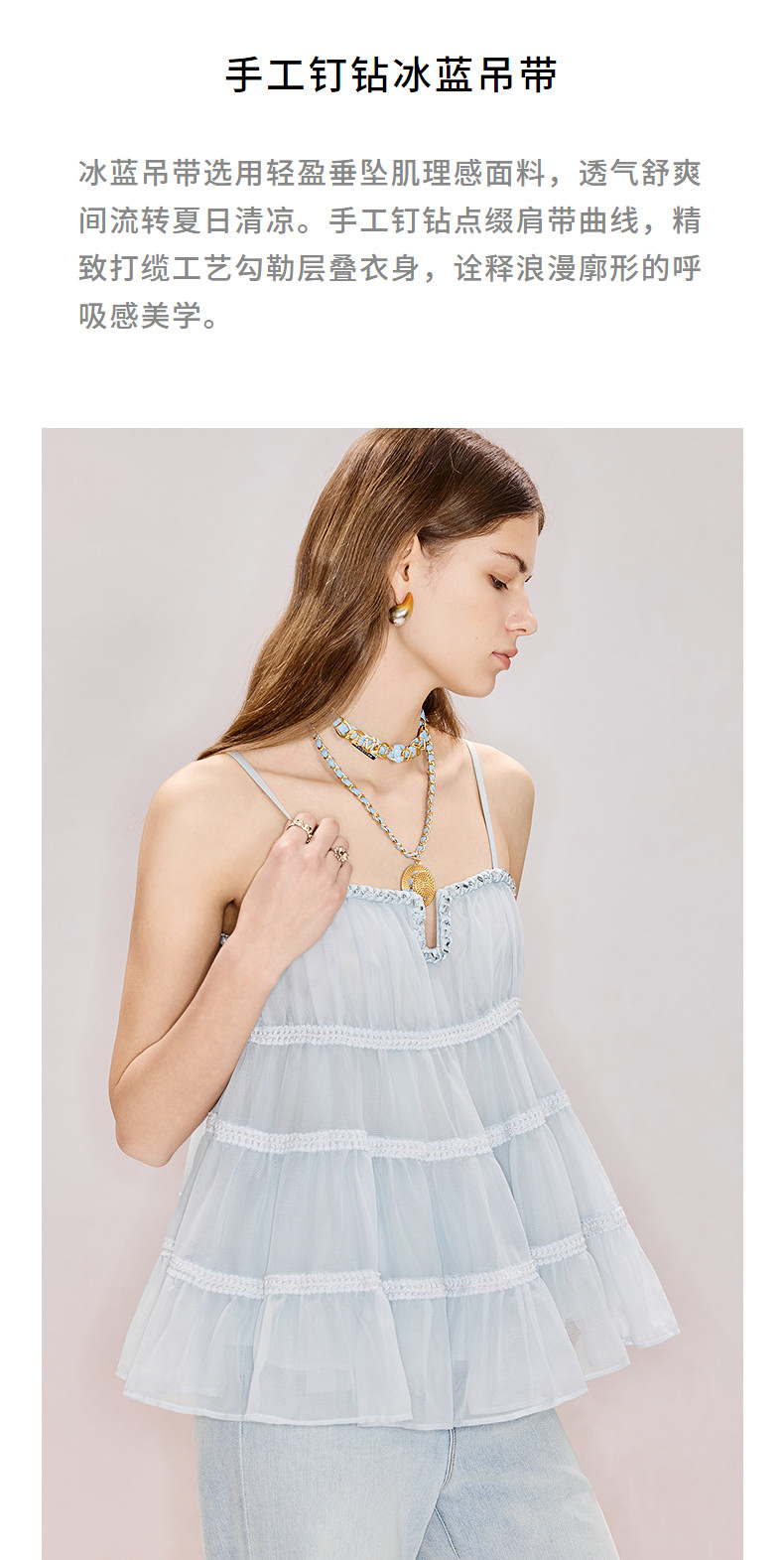 MAXRIENY雾蓝色背心吊带2026年春季新款手工钉钻无袖肌理感上衣(货号:MF80TP011)