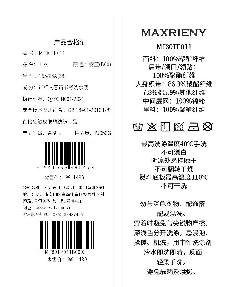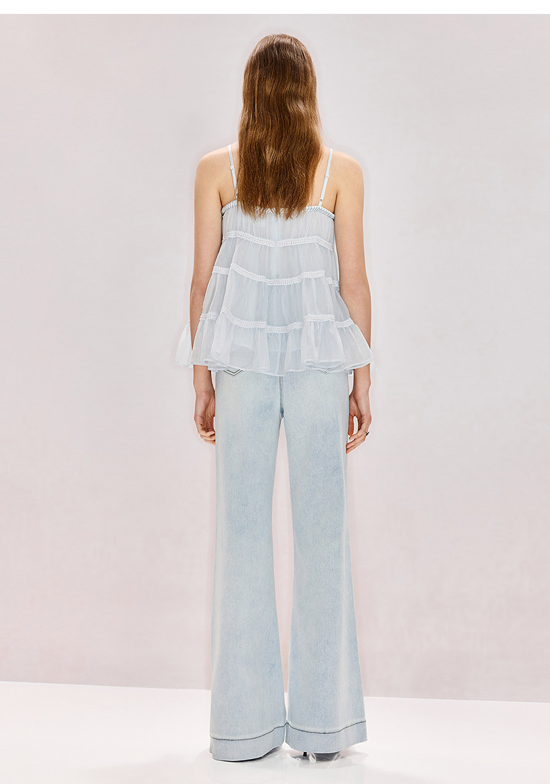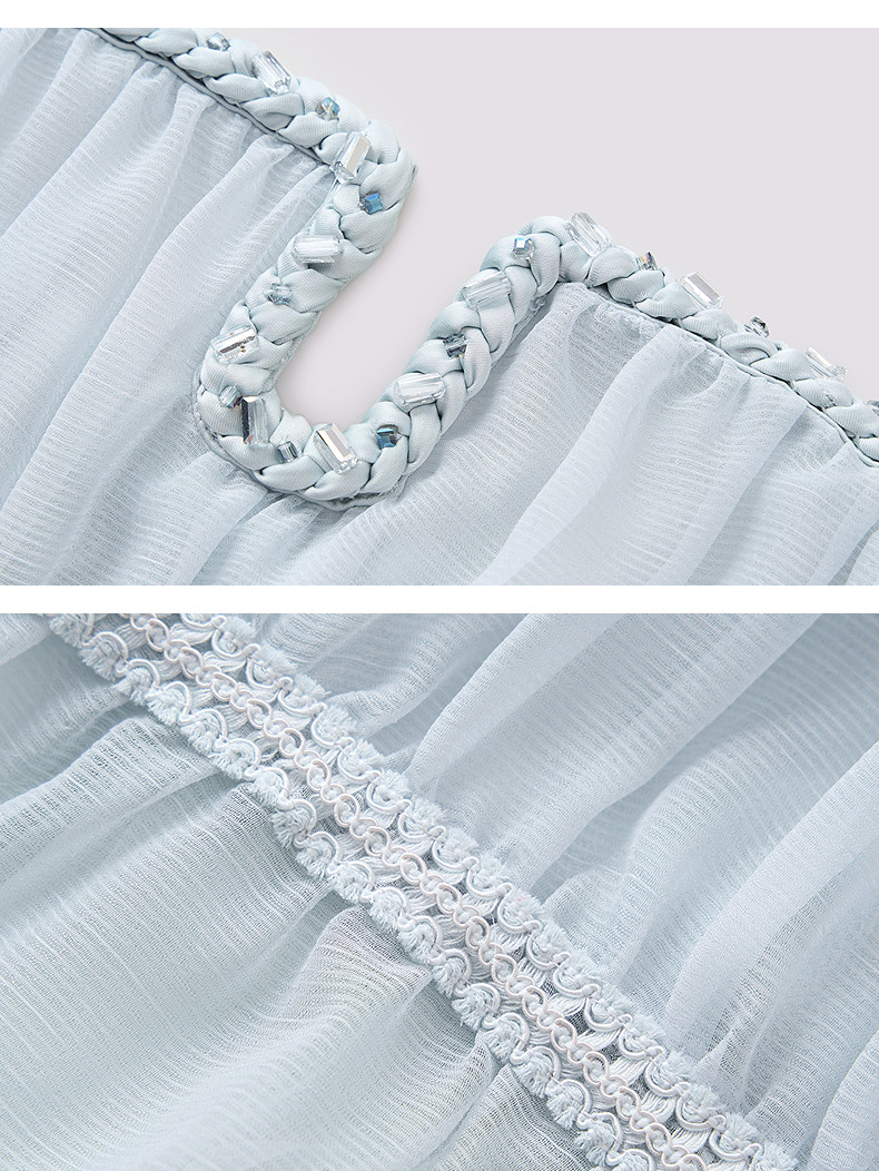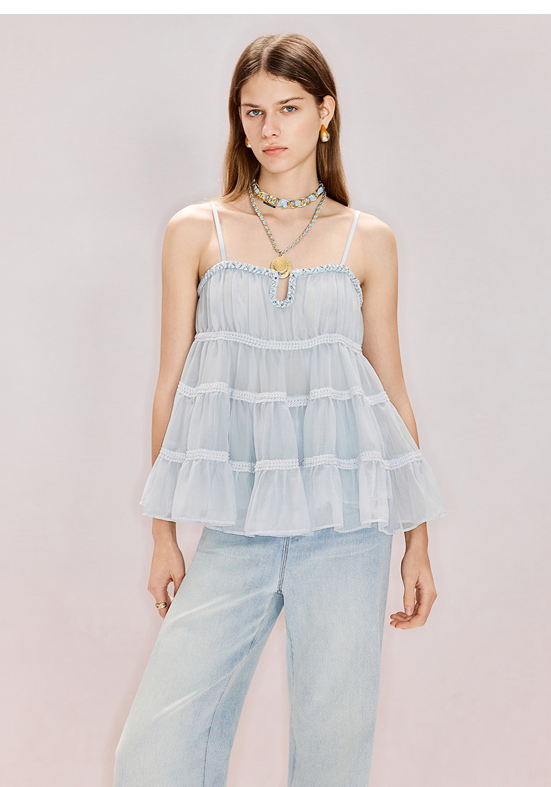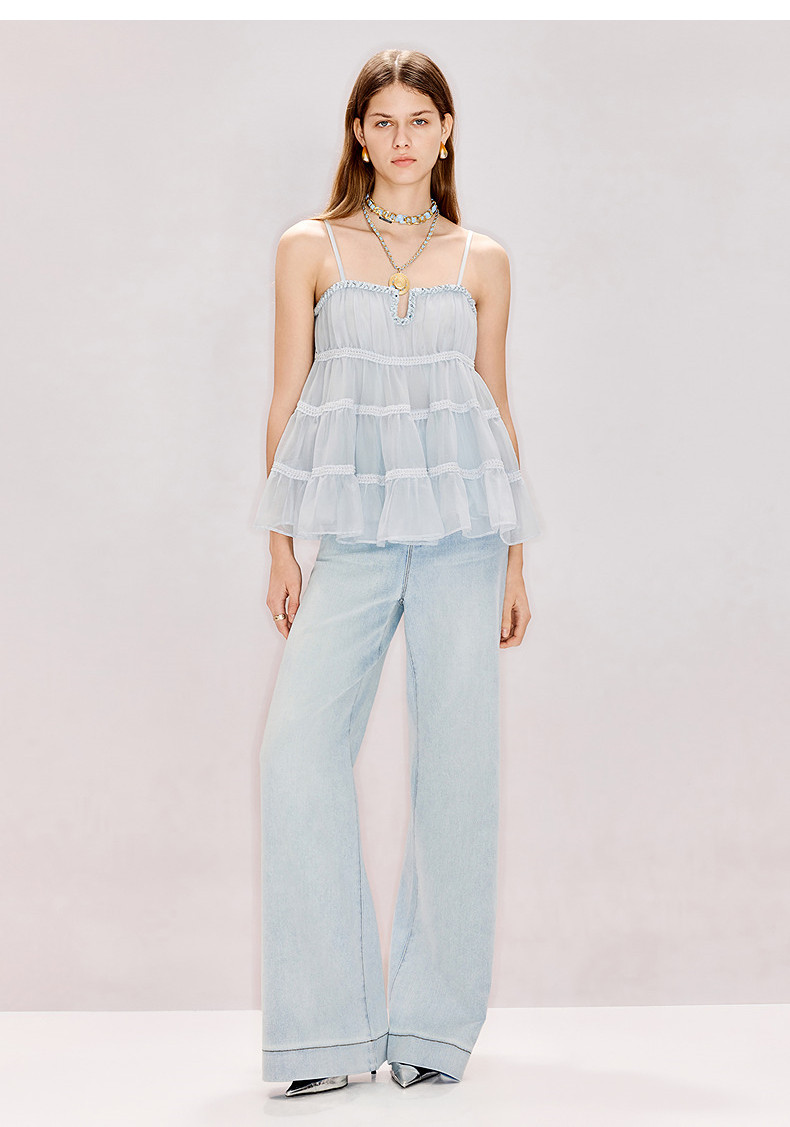 MAXRIENY雾蓝色背心吊带2026年春季新款手工钉钻无袖肌理感上衣(货号:MF80TP011)
