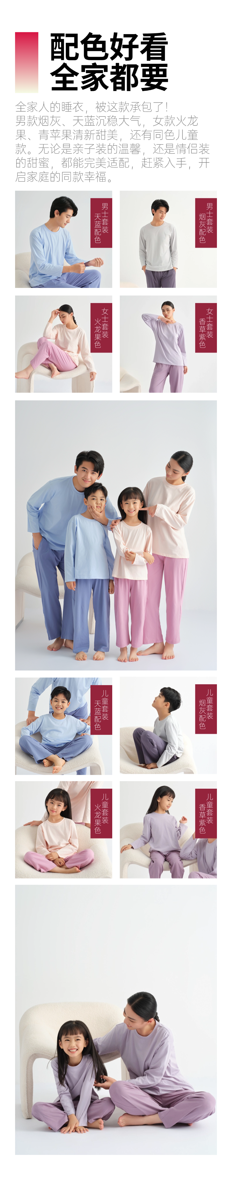 秋季睡衣|男女儿童全家款 95% 新疆长绒棉+5% 氨纶 上衣+裤子 国标 A 类母婴级面料 25 斤到 200 斤都能穿 家居服 睡衣