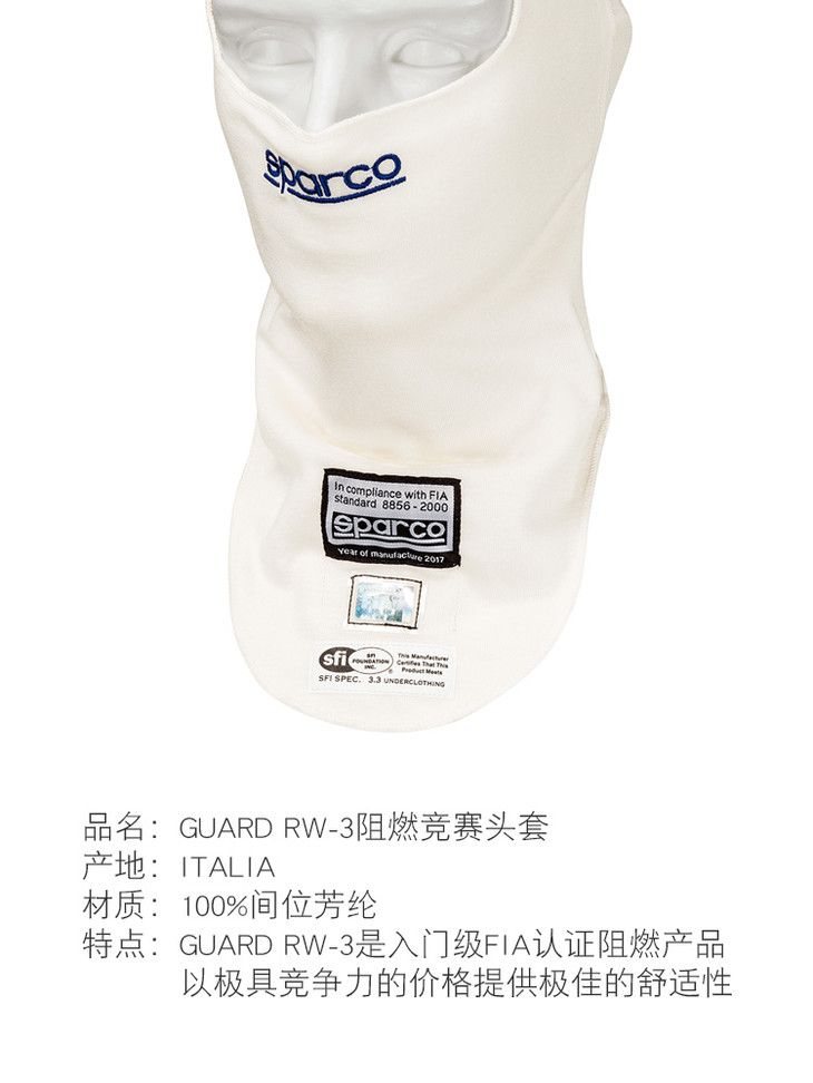 SPARCO头套 FIA认证 防火 超柔 GUARD RW-3