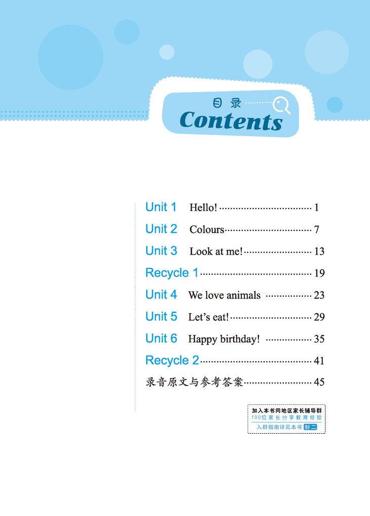丛书依据教育部《义务教育英语课程标准(2011 年版)》的目标要求,配合人教版《义务教育教科书 英语(PEP)(三年级起点)》教材编写,每学期一册,共八册。每册结合教材核心板块,按单元课时序列编排。其中,将单元的对话和词汇板块融合设计,并增设Unit review 加强单元综合检测。复习单元Recycle 1 和Recycle 2 在结合教学内容的同时滚动前三个单元的教学内容。同时,也注意关注教材主情景图、Let’s check、Let’s sing和Story time等辅助板块,内容有所拓展,要求有一定提升。