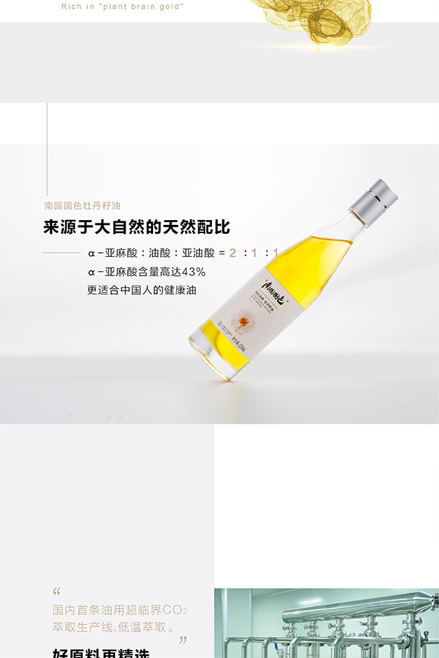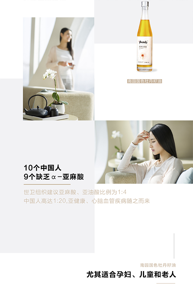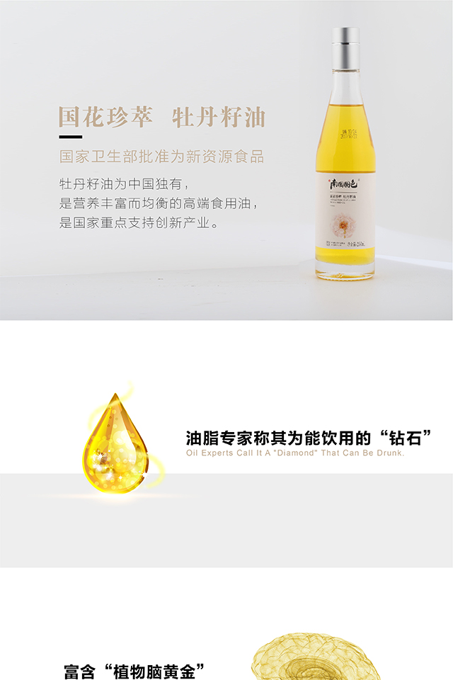 南园国色 牡丹籽油高端健康食用油 物理压榨亚麻籽油纯牡丹花小磨食用油植物油