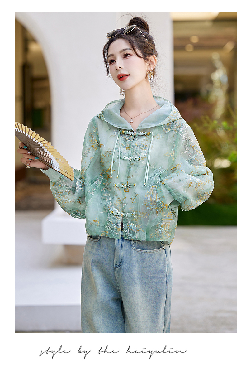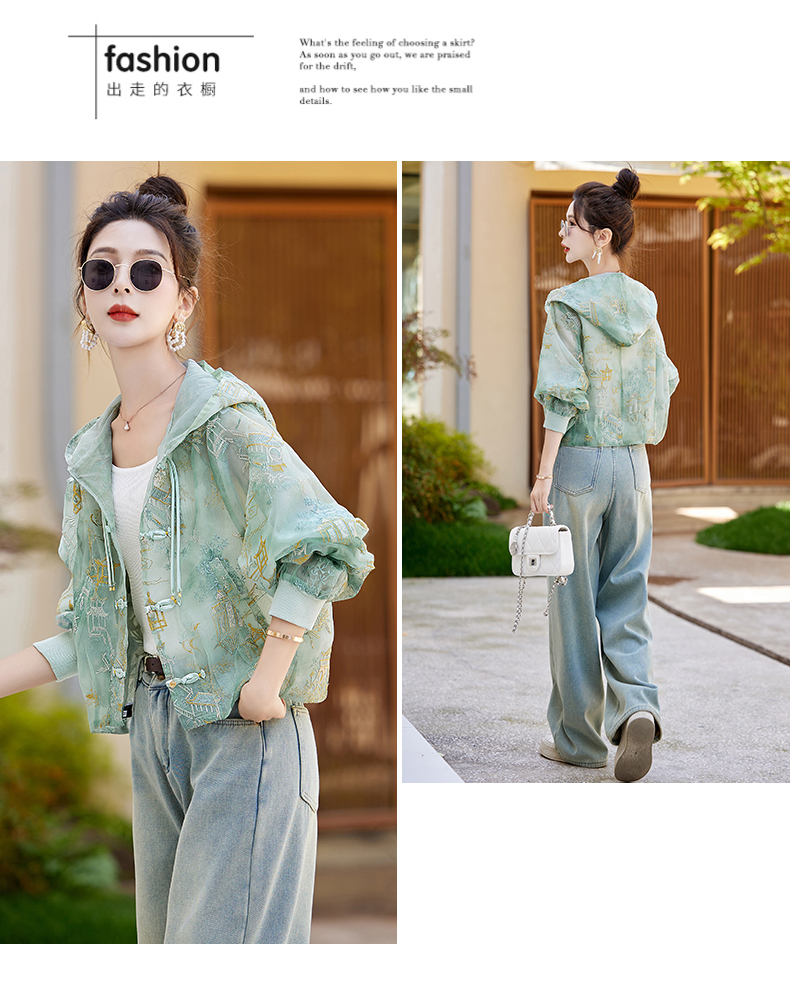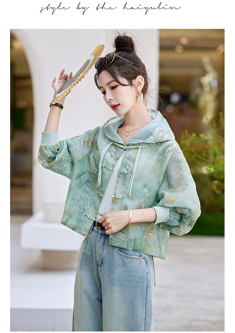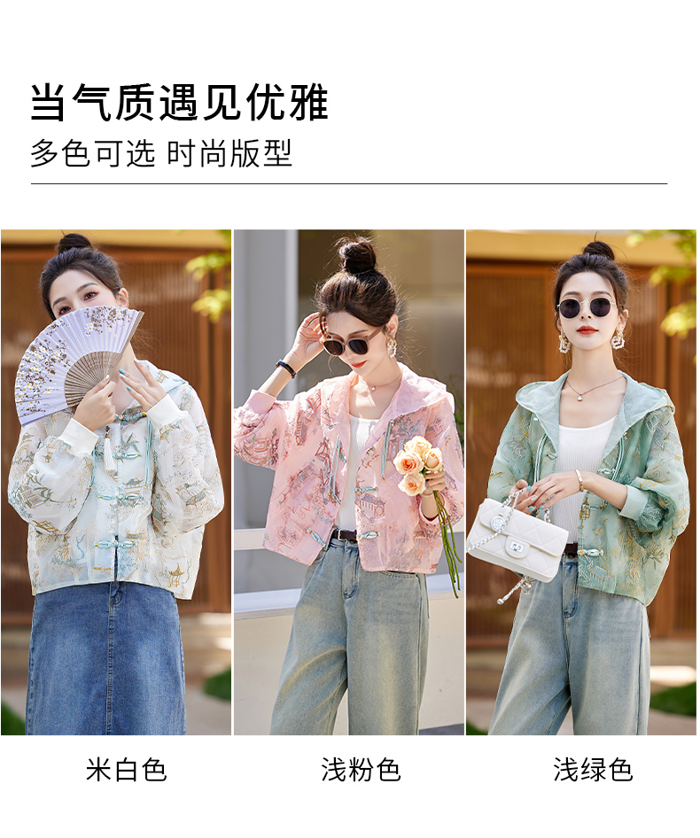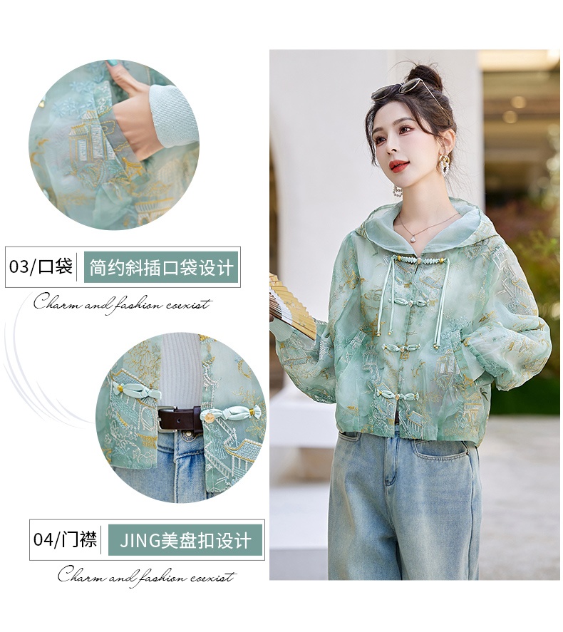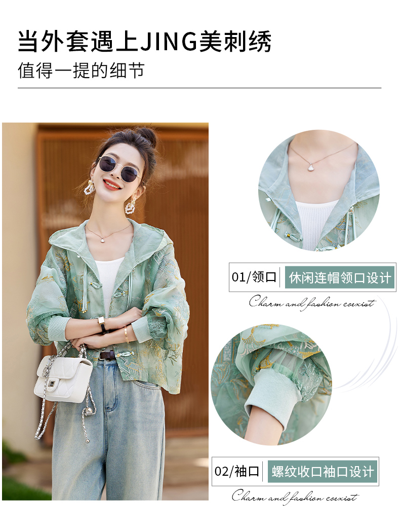 时尚新中式,防晒重工刺绣连帽外套HR-GJC9230