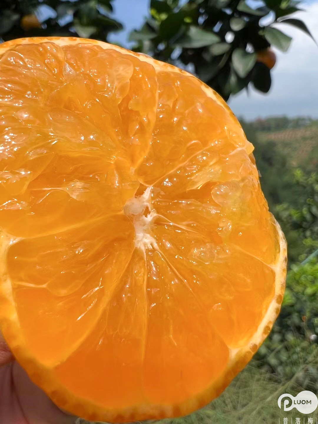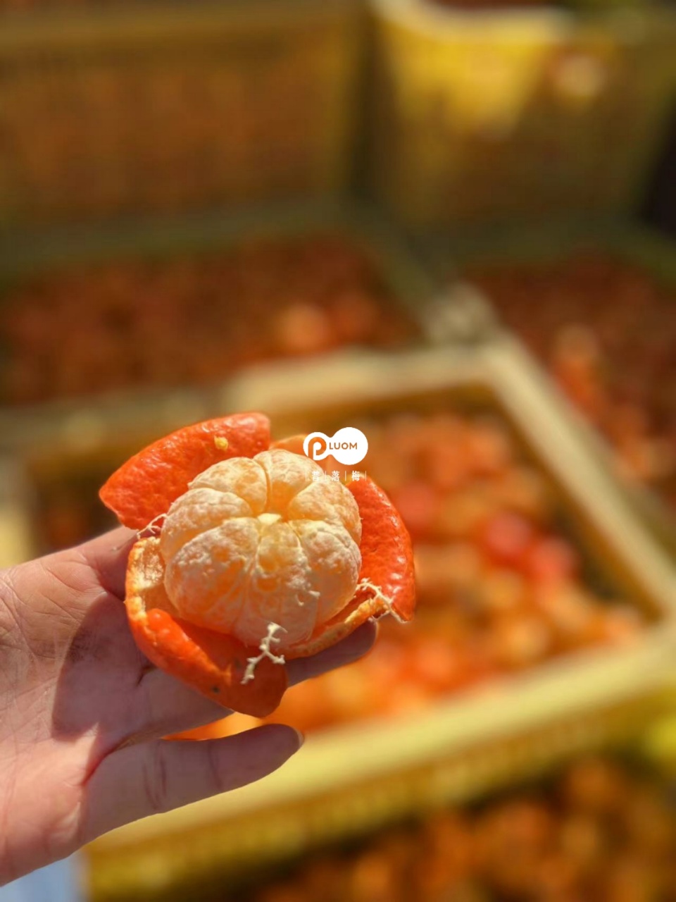 果皮橙红透黄是它羞涩的模样,剥开果皮之后,便露出了它那饱满的果肉,随之一阵橘子的清香袭来,入口甘甜,果肉鲜嫩爽口,而且还有酸甜的汁水在舌尖弥漫。