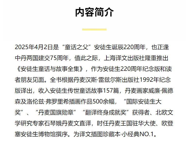 安徒生童话与故事全集 译文插图珍藏本·小经典 [丹麦]安徒生 著 石琴娥 译 诞辰纪念版 原版高清插画 上海译文出版社 正版