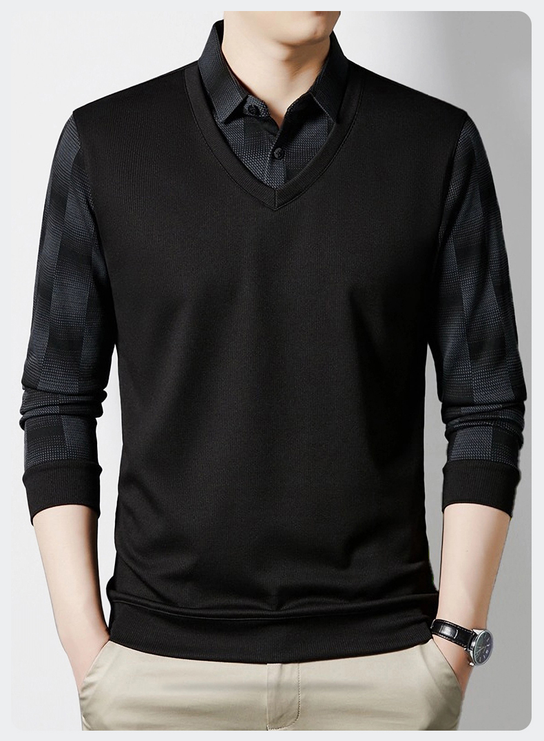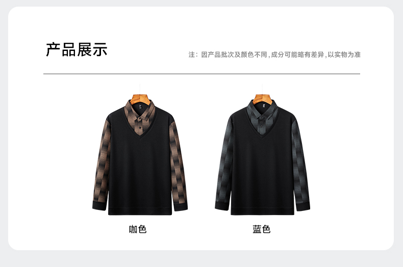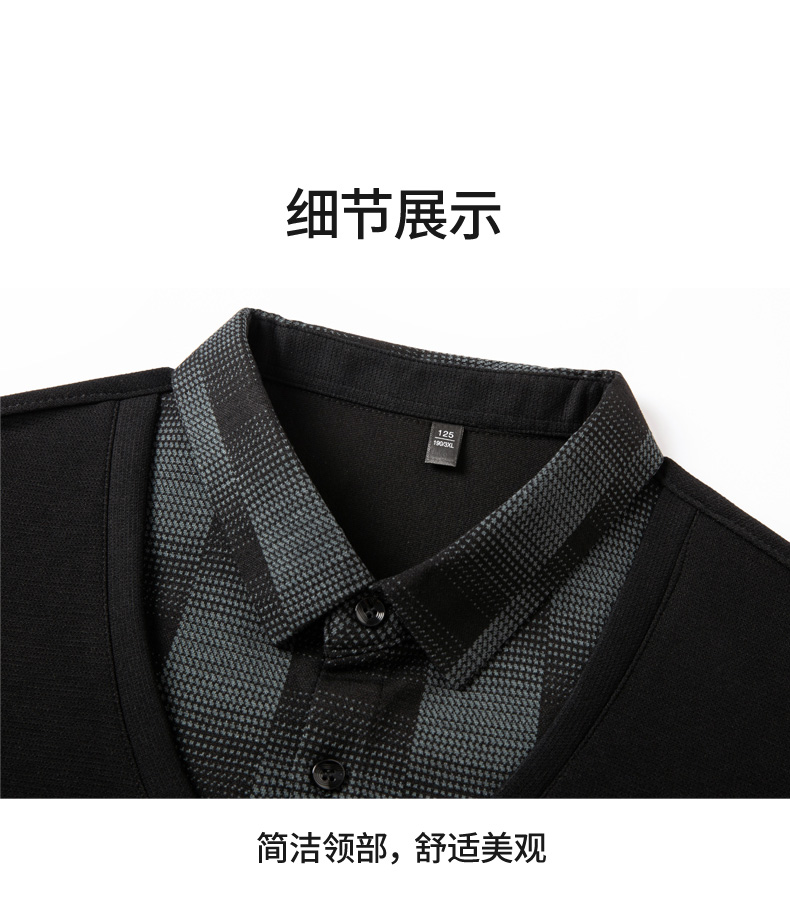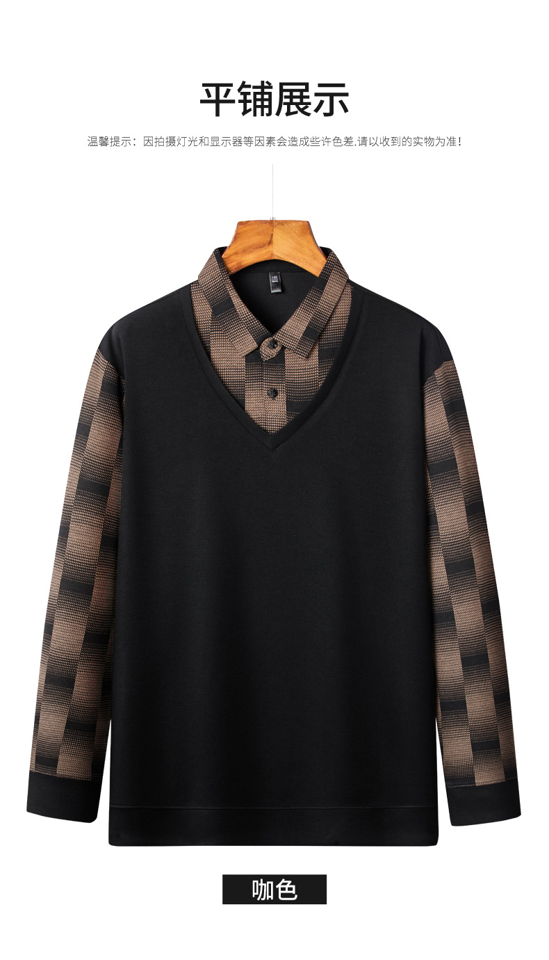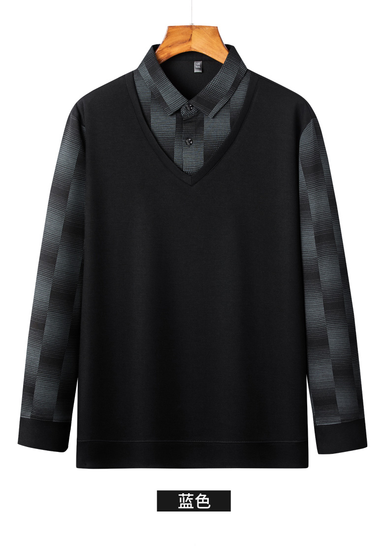 【Q】【假两件】【新款DSZ】大依优型大码假两件长袖T恤衬衫领加肥加大肥佬休闲商务宽松透气上衣打底