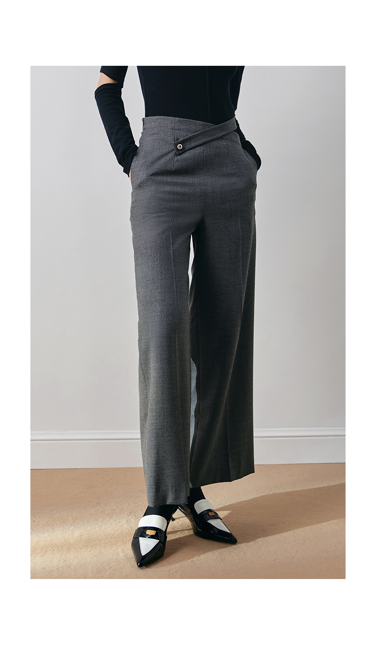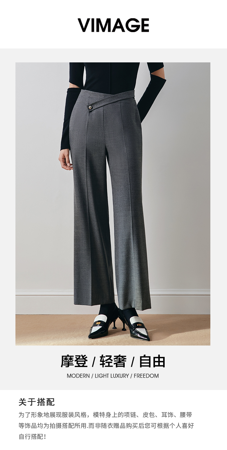 VIMAGE纬漫纪冬季气质通勤百搭显瘦高腰休闲直筒裤子V2005620