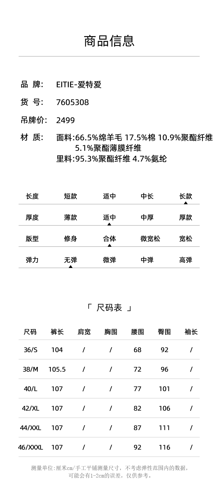 EITIE爱特爱冬季季高腰修身显瘦格子裤女7605308