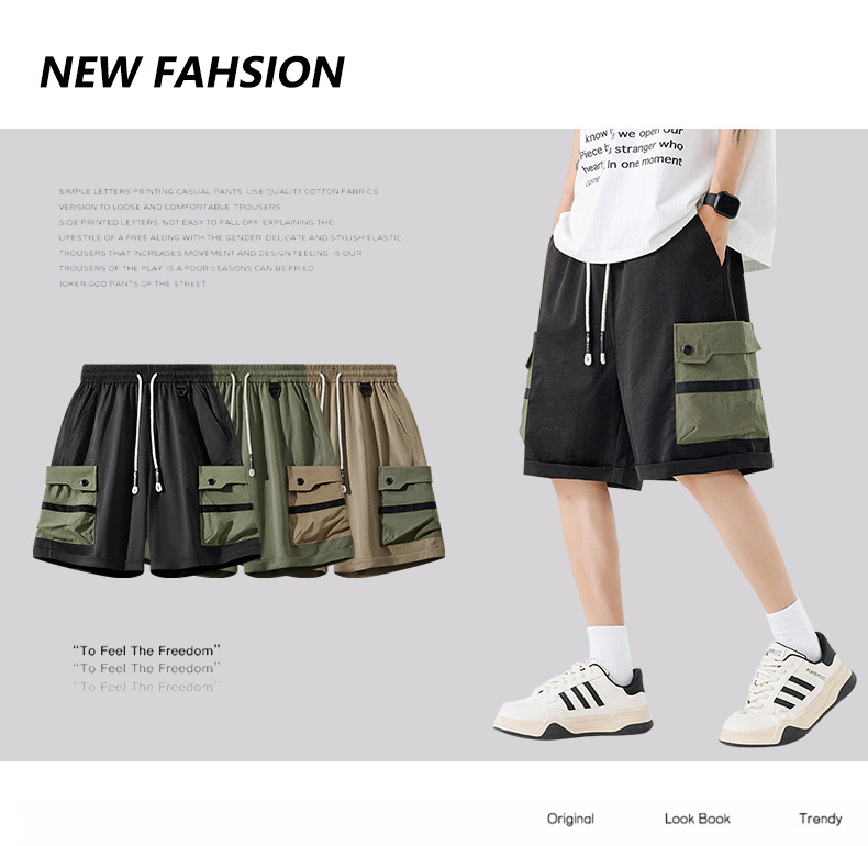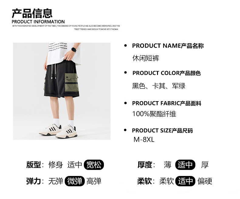 【DSL】大依优型大码短裤五分裤大号工装裤子弹力透气加肥加大夏季松紧腰宽松运动沙滩裤