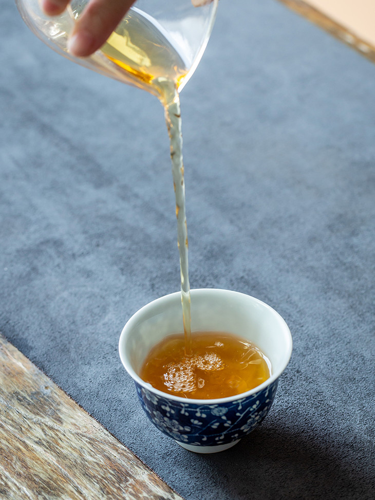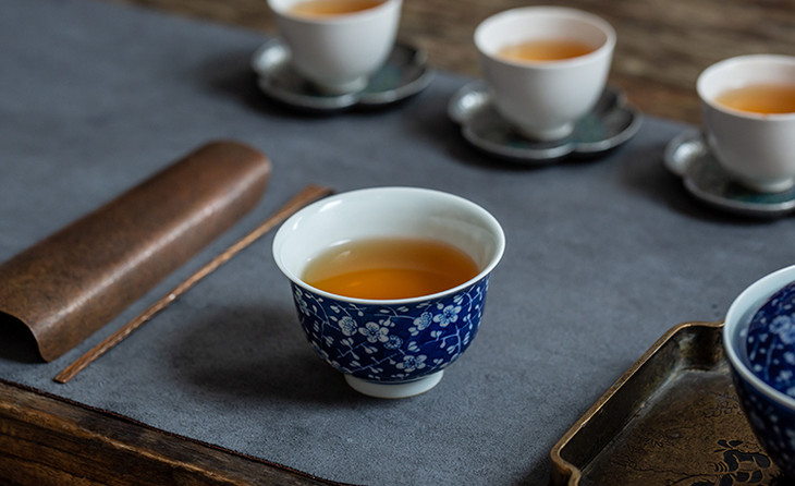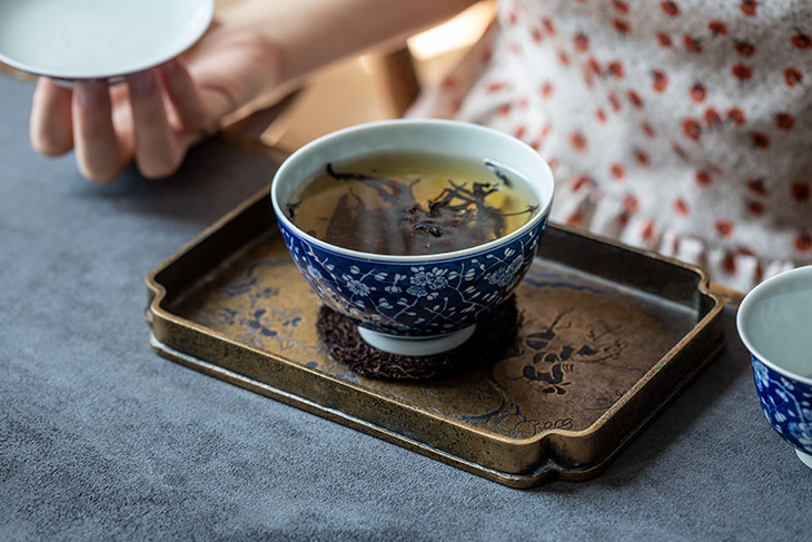 引梅入杯盏,仿佛茶汤也能沾染到梅的寒香,