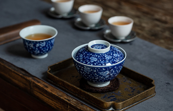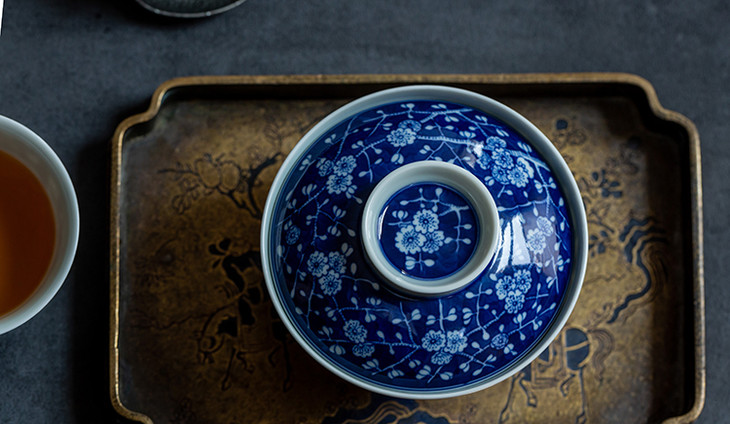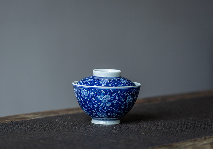 盖碗完美诠释了青花的蓝与冰梅的傲,