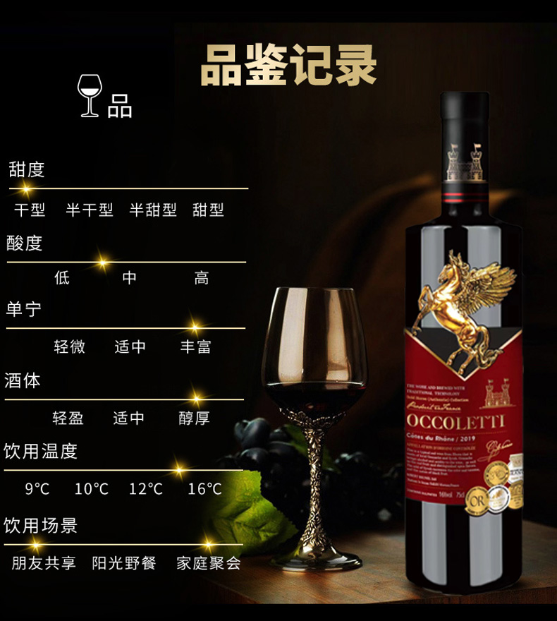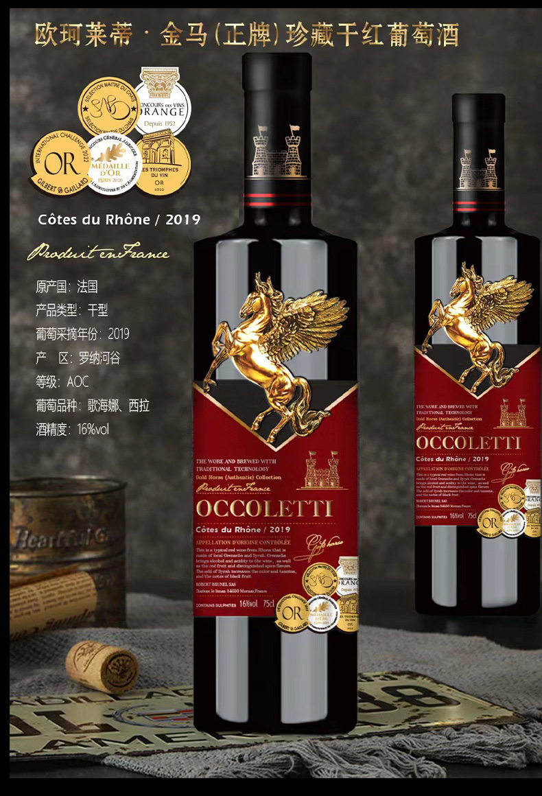 【750ml*6瓶礼盒装】法国原瓶进口红酒欧珂莱蒂·金马珍藏干红葡萄酒ds(gz)