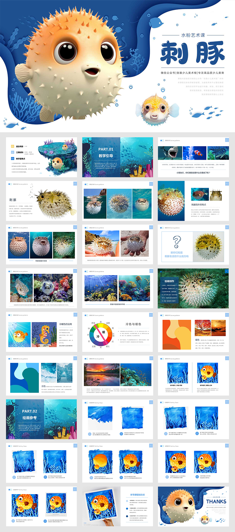 《少儿水粉画中的冷暖色:圆鼓鼓的小刺豚》水粉画/丙烯画/自动发货:下单后,点击手机短信中收到的链接,即可获取文件下载的链接;如有任何问题,可添加客服微信hm33268获得帮助。