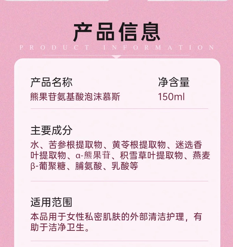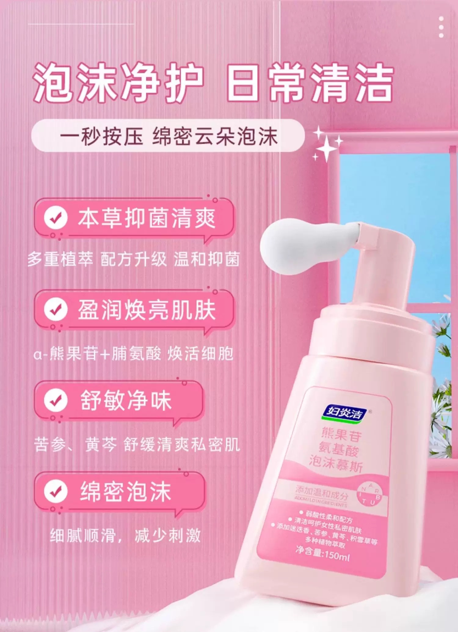 妇炎洁熊果苷氨基酸泡沫慕斯/1瓶(150ml)限用日期:26年6月补单专用