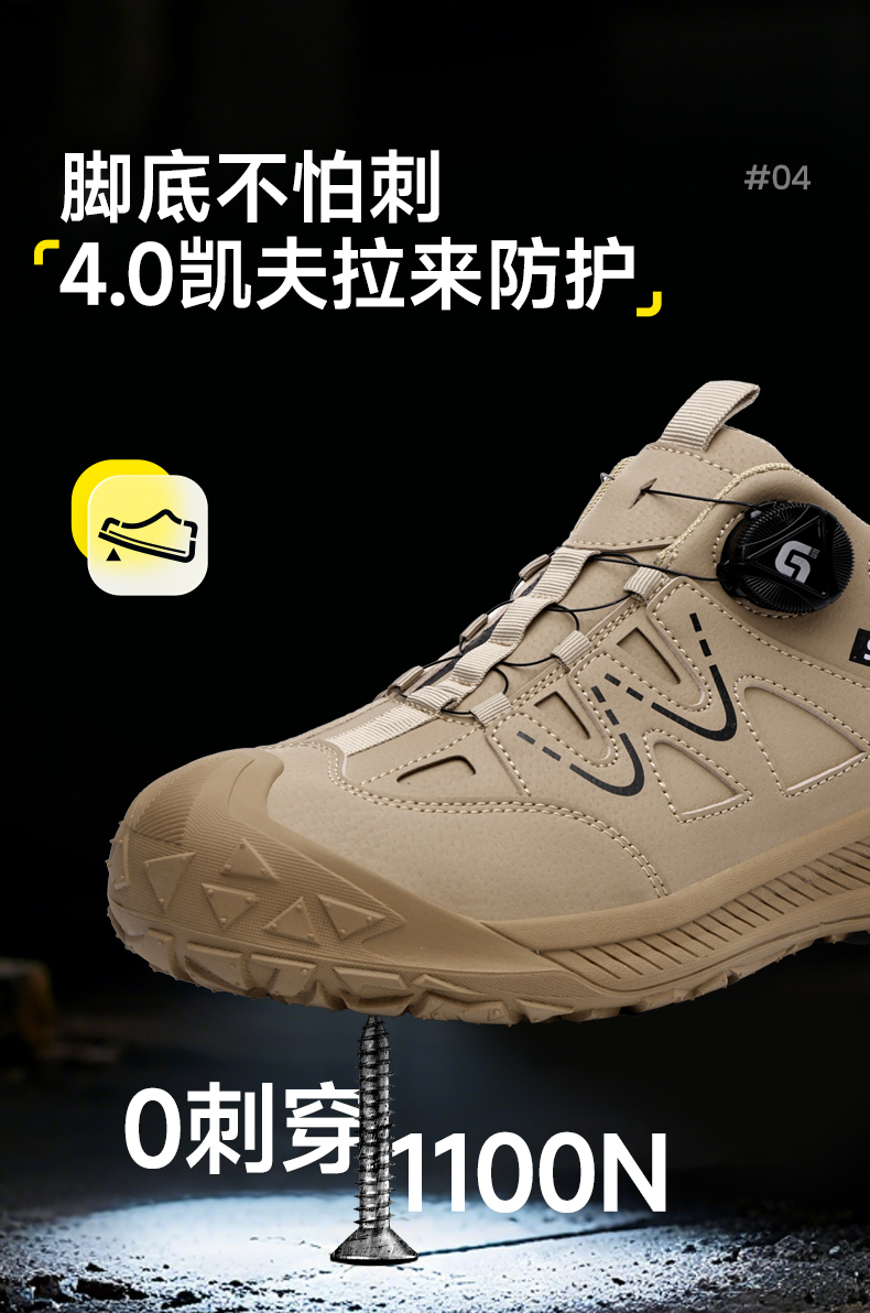 2026新款劳保鞋男防砸防刺安全鞋钢包头4.0凯夫拉橡胶底大底工作鞋