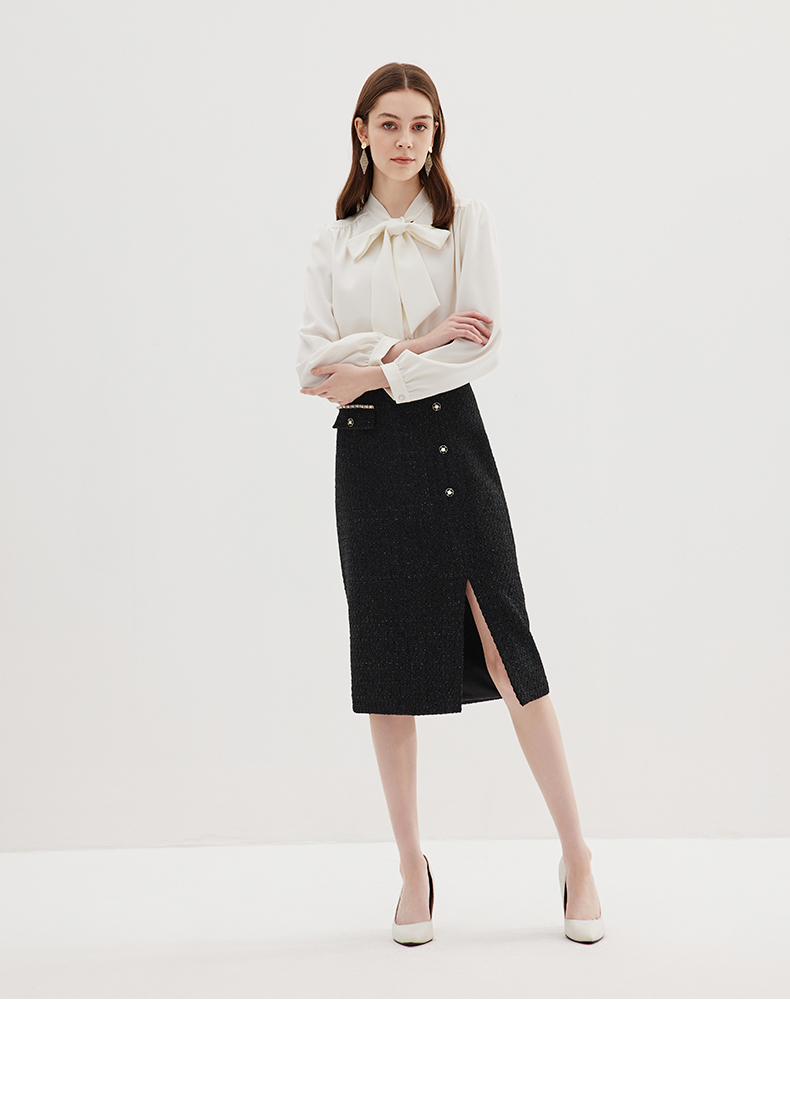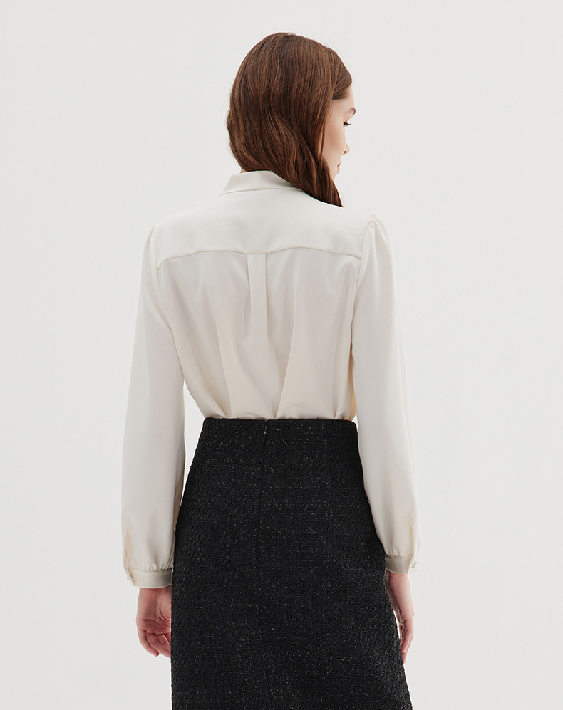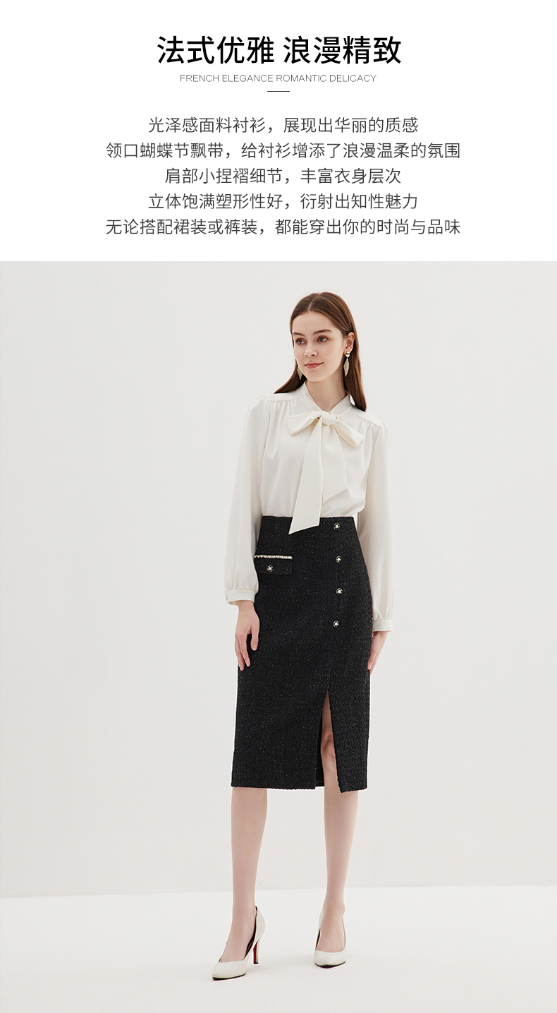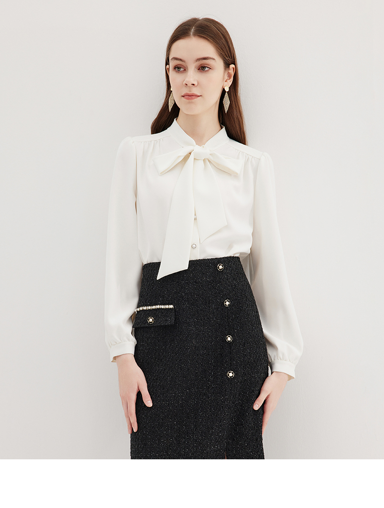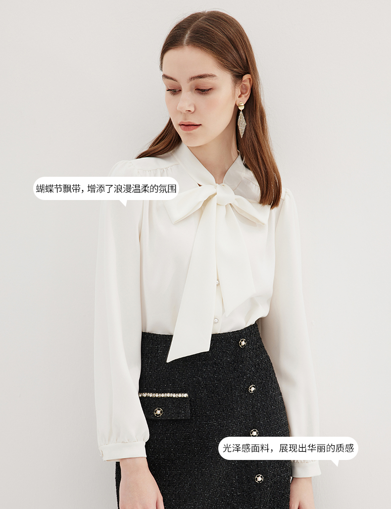 EITIE爱特爱秋季新款温柔百搭显瘦飘带上衣衬衫C2309202