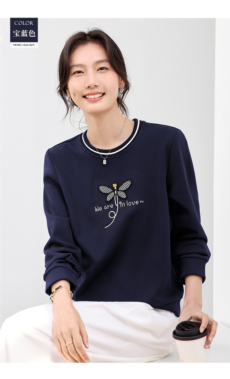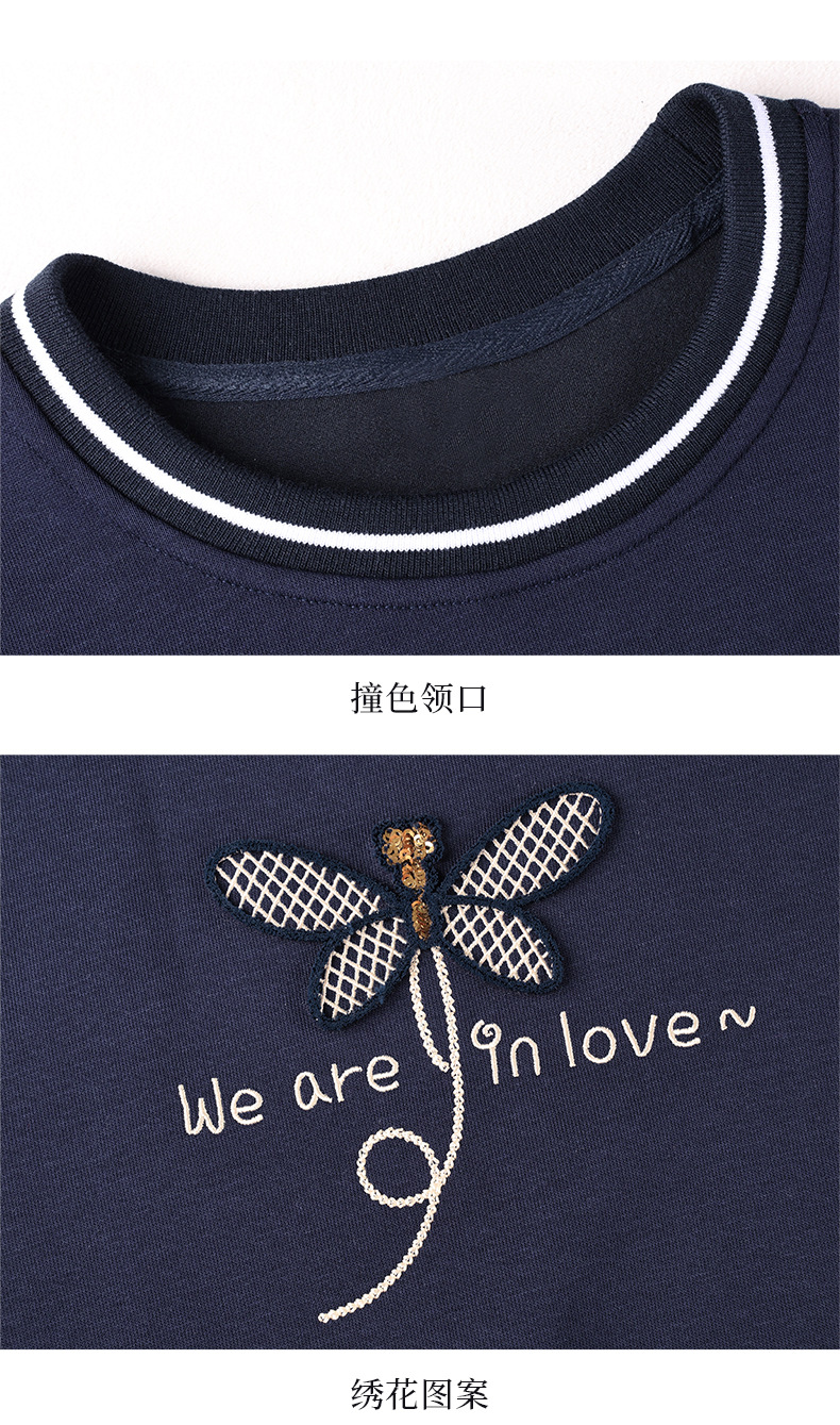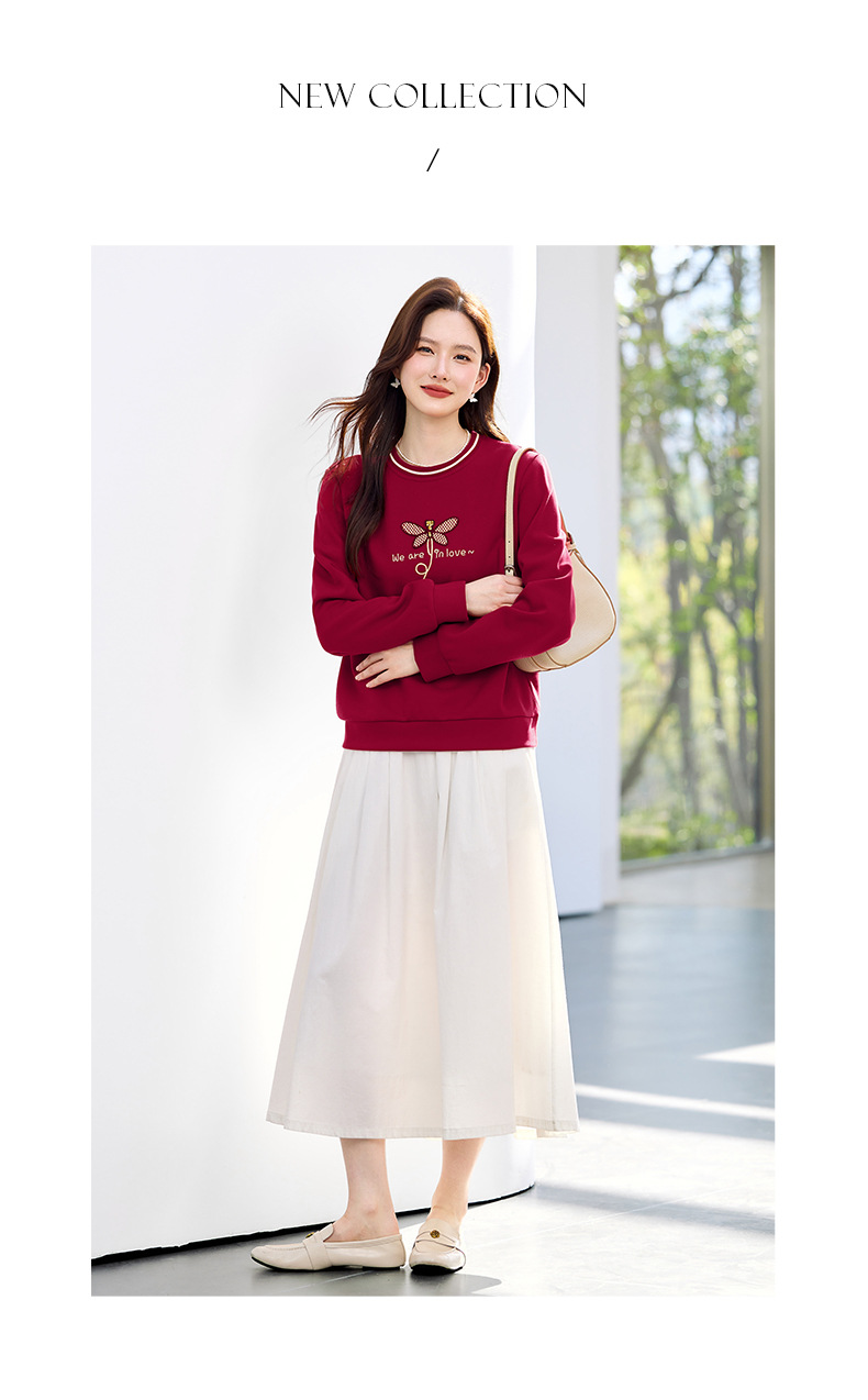 百媚生 棉质正肩圆领卫衣套头上衣S82610094