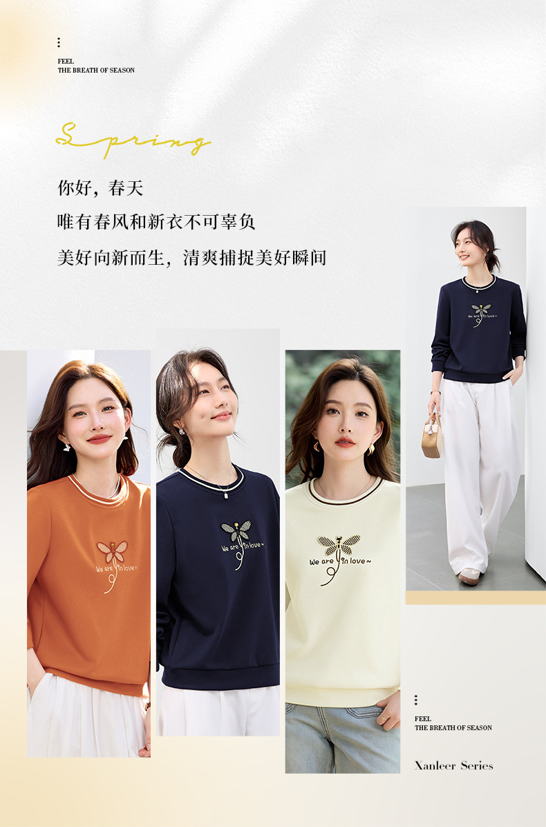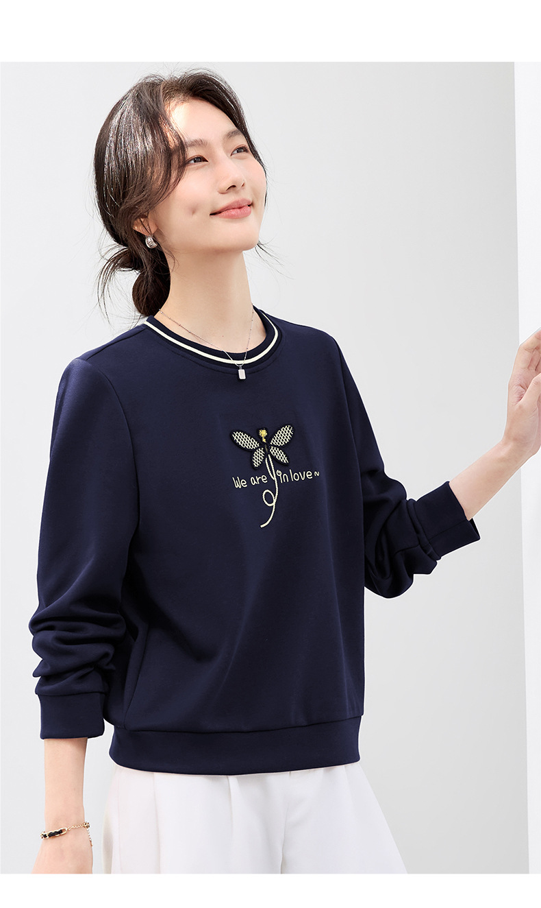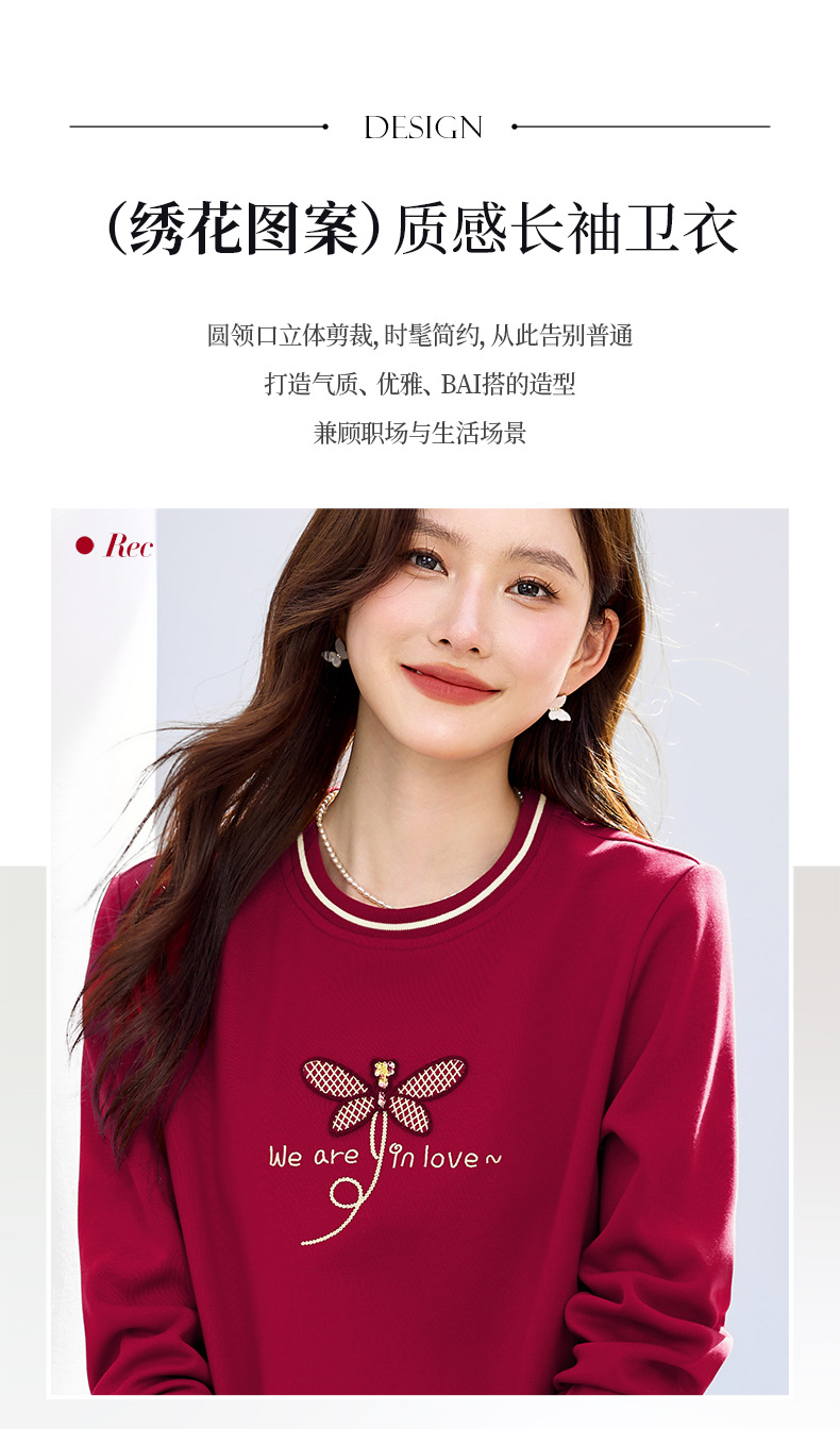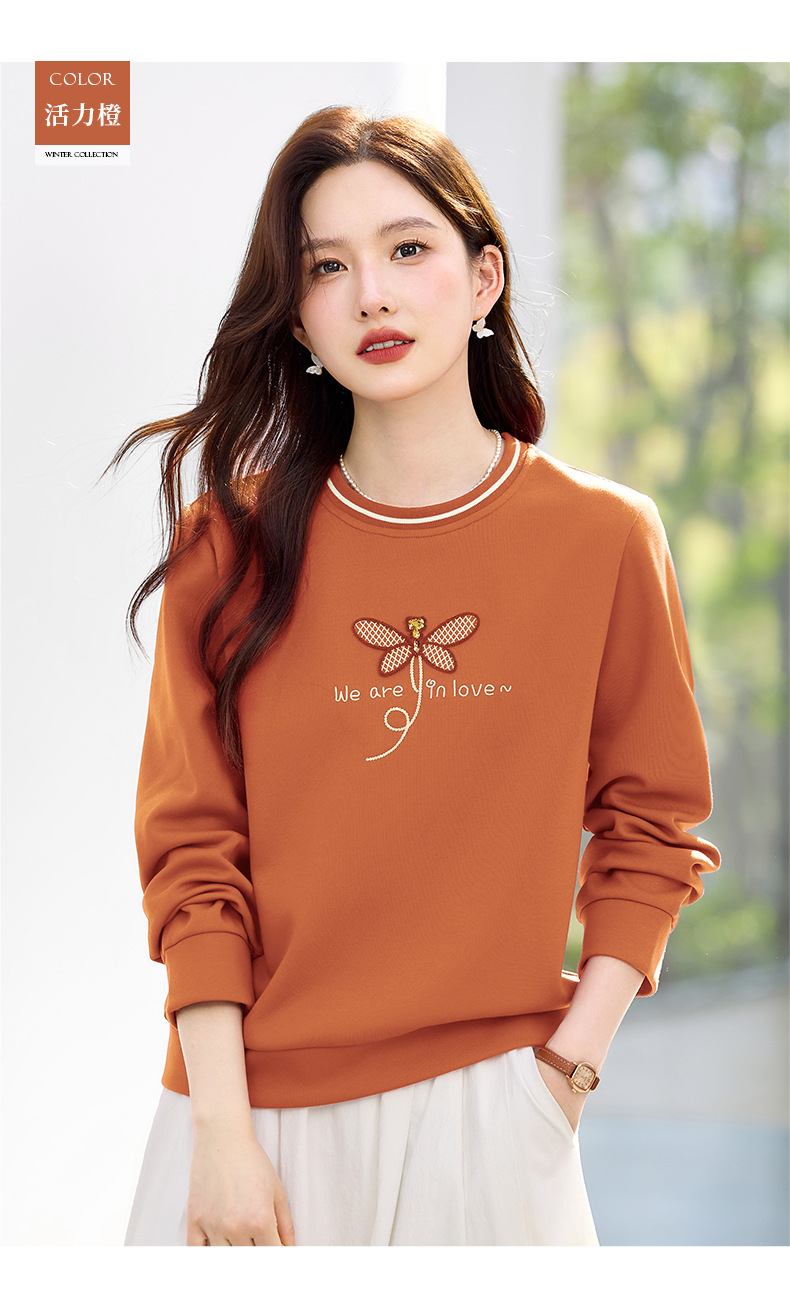 百媚生 棉质正肩圆领卫衣套头上衣S82610094