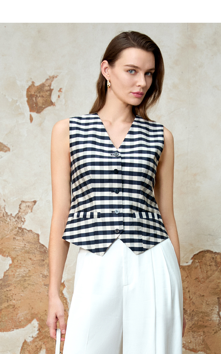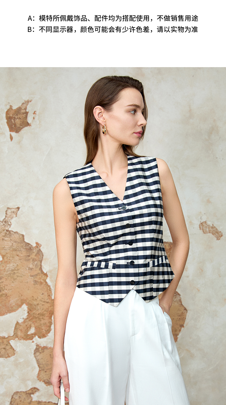 EITIE爱特爱夏季新款气质V领显瘦修身无袖百搭上衣8213902