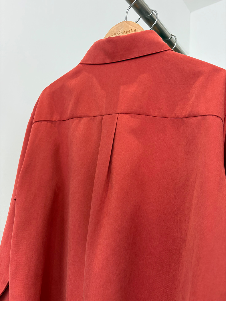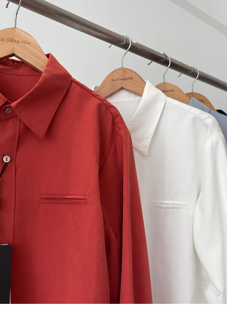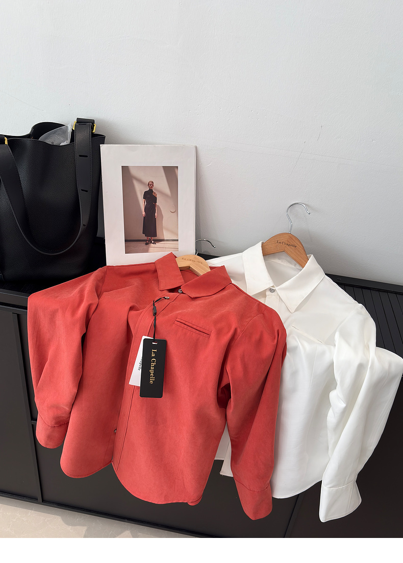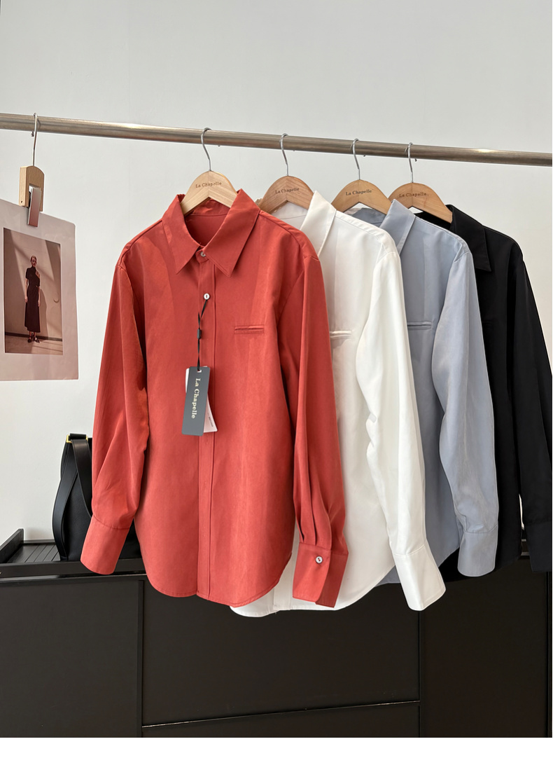 会员福利【挺阔有型/高品质】拉夏贝尔/La Chapelle通勤排扣翻领衬衫女2025秋季新款一字假口袋长袖宽松长袖衬衣