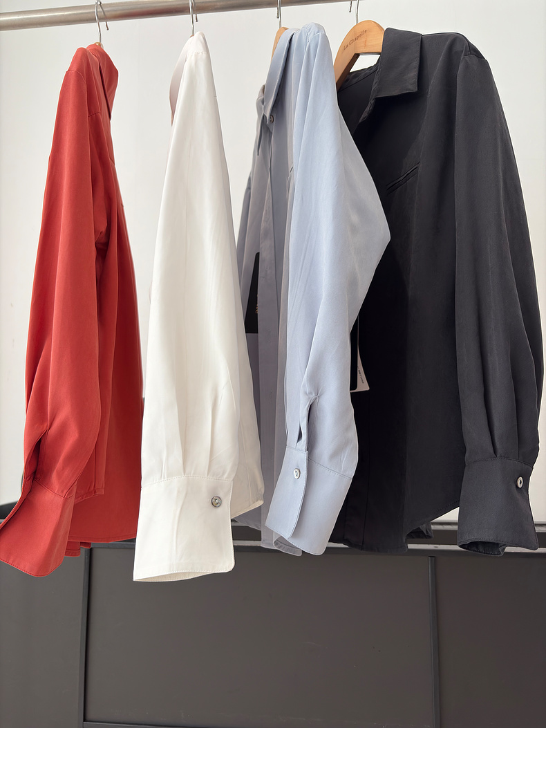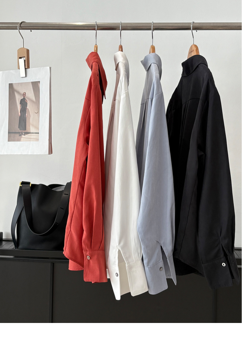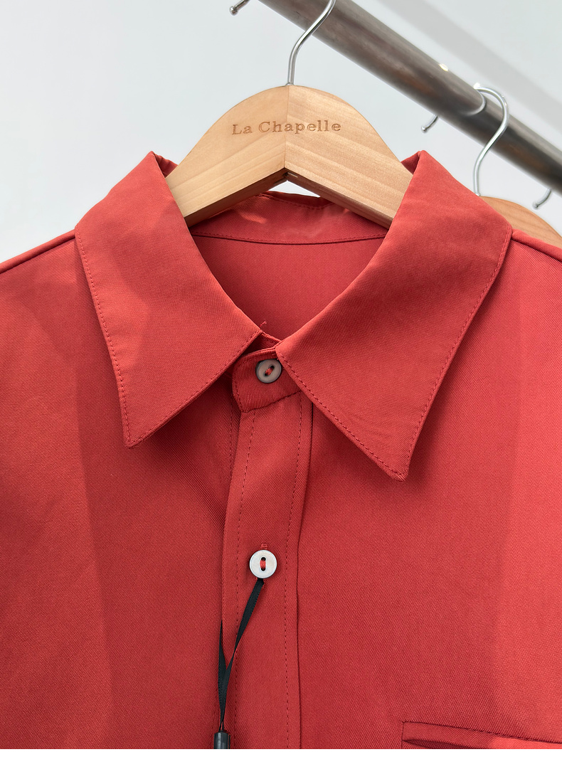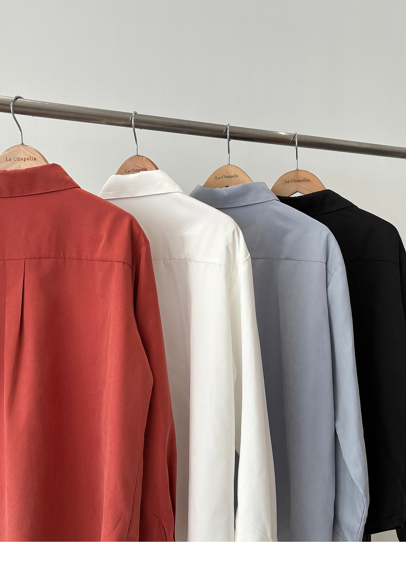 会员福利【挺阔有型/高品质】拉夏贝尔/La Chapelle通勤排扣翻领衬衫女2025秋季新款一字假口袋长袖宽松长袖衬衣