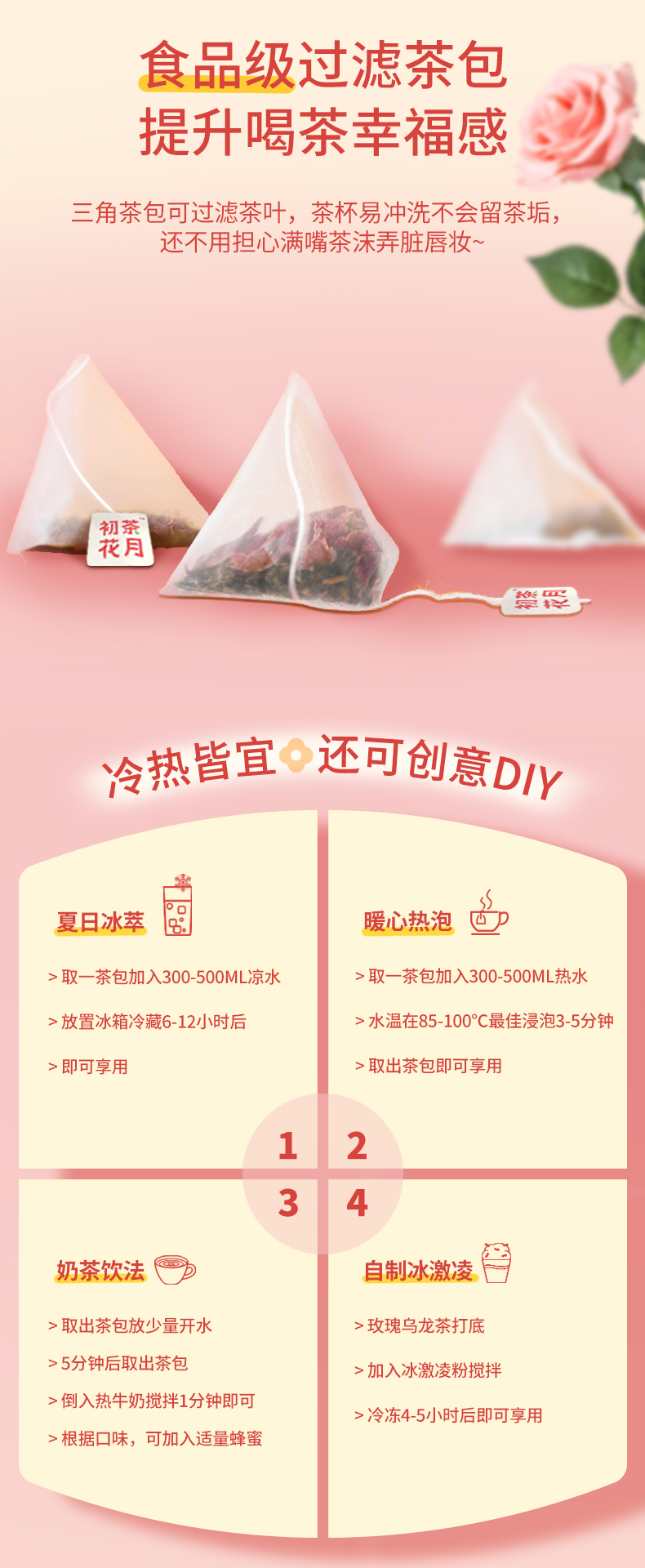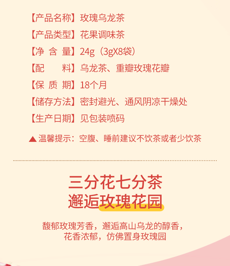 初茶花月玫瑰乌龙茶 24g/袋 醇香夏季茶饮