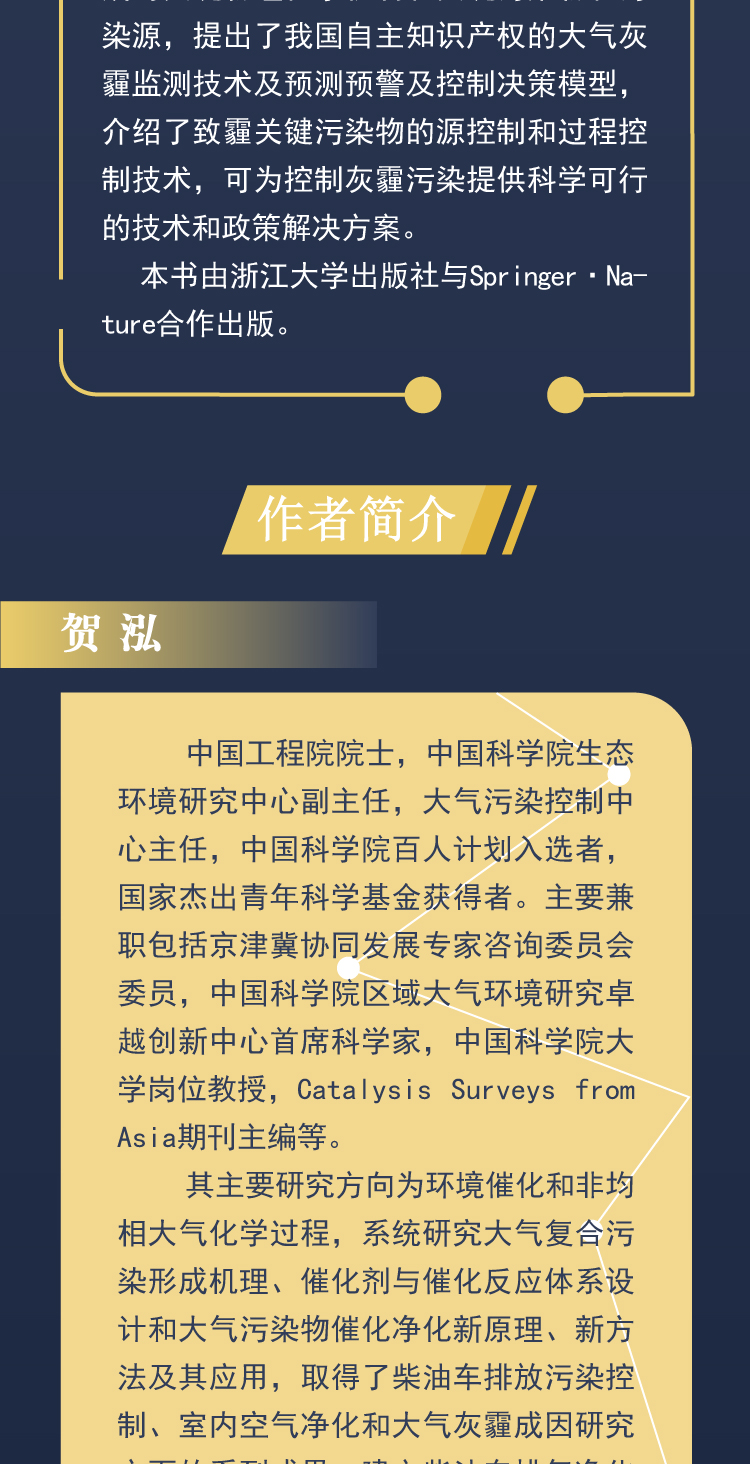 贺泓,中国工程院院士,中国科学院生态环境研究中心副主任,大气污染控制中心主任,中国科学院百人计划入选者,国家杰出青年科学基金获得者。主要兼职包括京津冀协同发展专家咨询委员会委员,中国科学院区域大气环境研究卓越创新中心首席科学家,中国科学院大学岗位教授,Catalysis Surveys from Asia期刊主编等。 其主要研究方向为环境催化和非均相大气化学过程,系统研究大气复合污染形成机理、催化剂与催化反应体系设计和大气污染物催化净化新原理、新方法及其应用,取得了柴油车排放污染控制、室内空气净化和大气灰霾成因研究方面的系列成果:建立柴油车排气净化技术系统并规模化应用;突破室温催化净化室内空气技术难题,实现新技术的产业化应用;探索大气中的环境催化,为大气灰霾追因与控制提供理论基础。