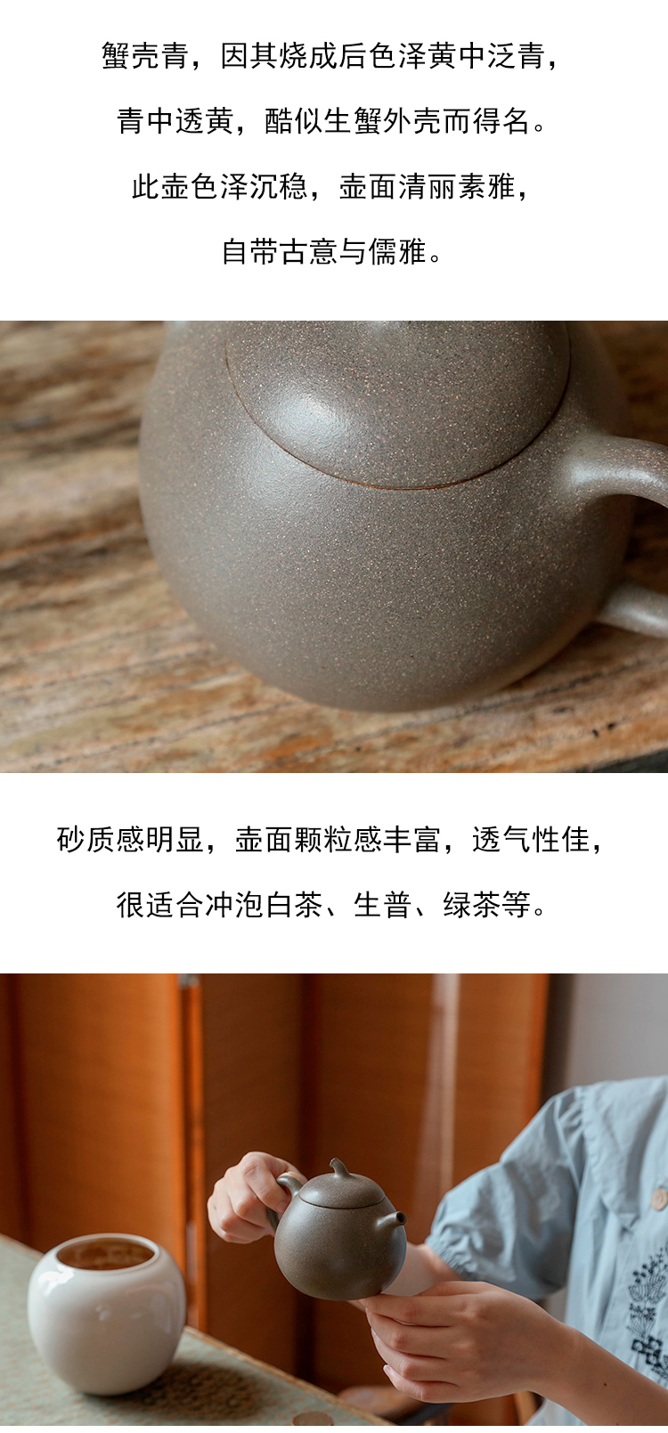 茶香记 青段(蟹壳青)茄瓜 紫砂壶 自然灵动 古朴清雅 浑圆素朴 茶壶
