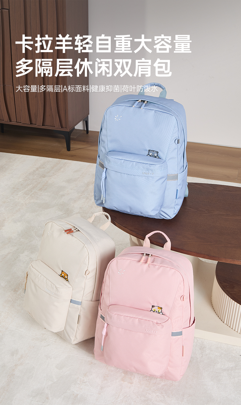 卡拉羊轻便休闲大容量学生书包时尚简约小清新超轻双肩包喵纪元CX5547