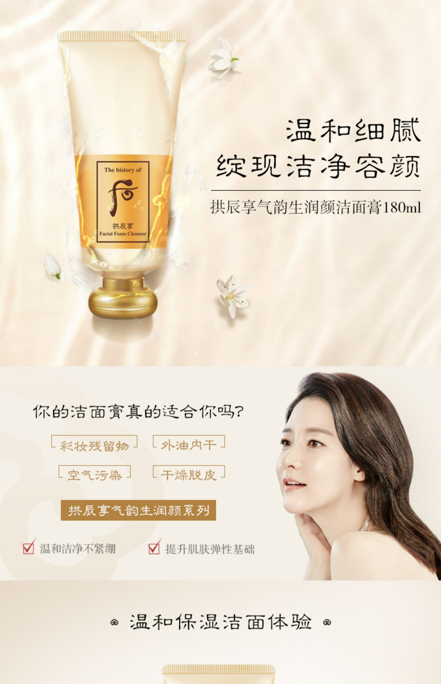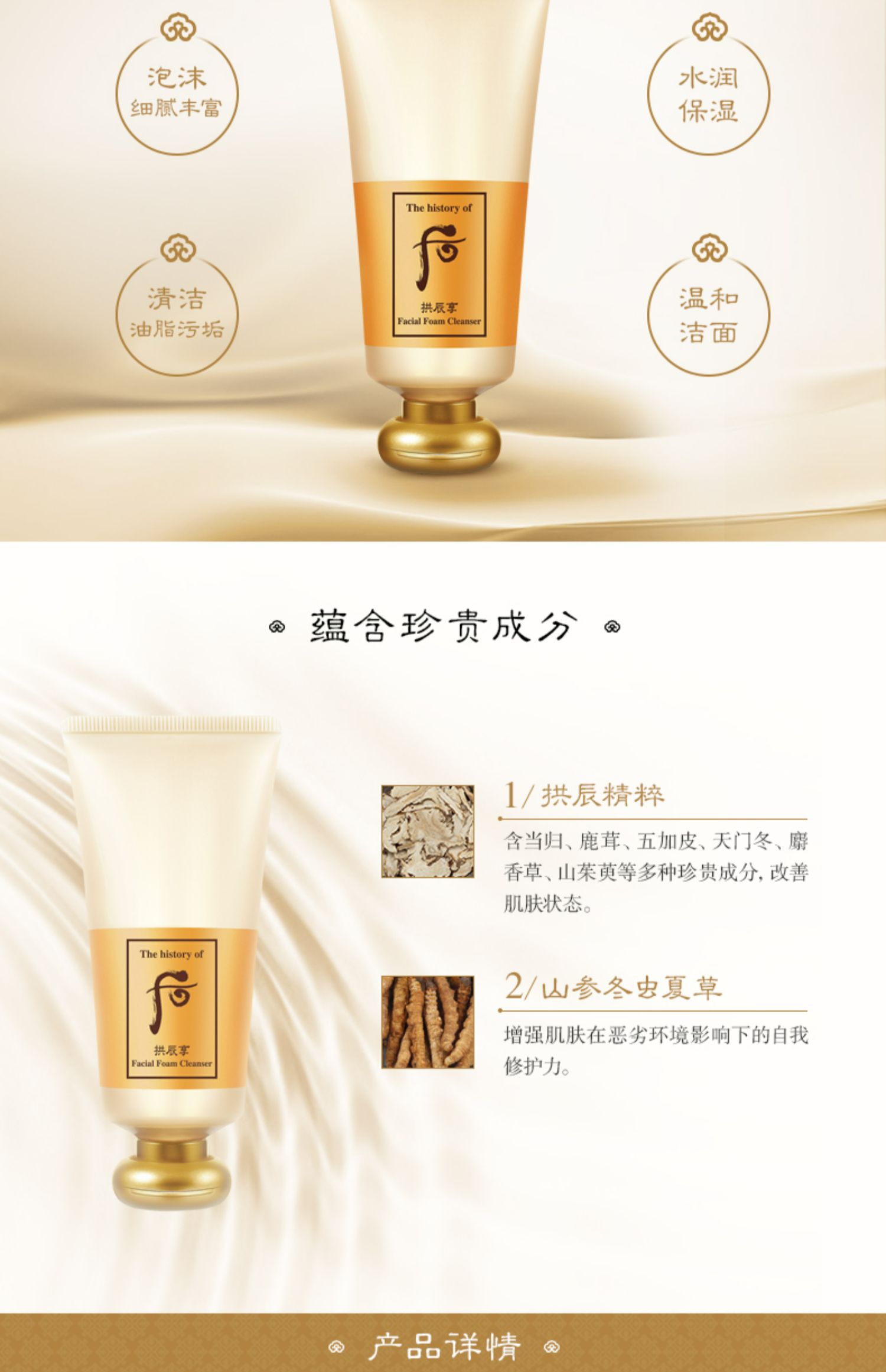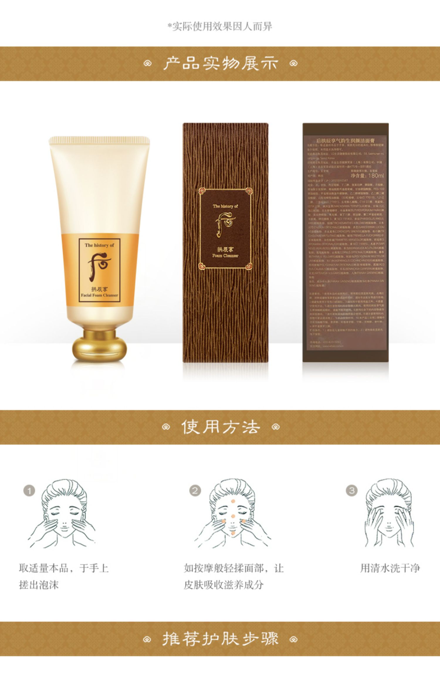 【保税直邮 青岛海关】whoo后拱辰享洗面奶180ml正装