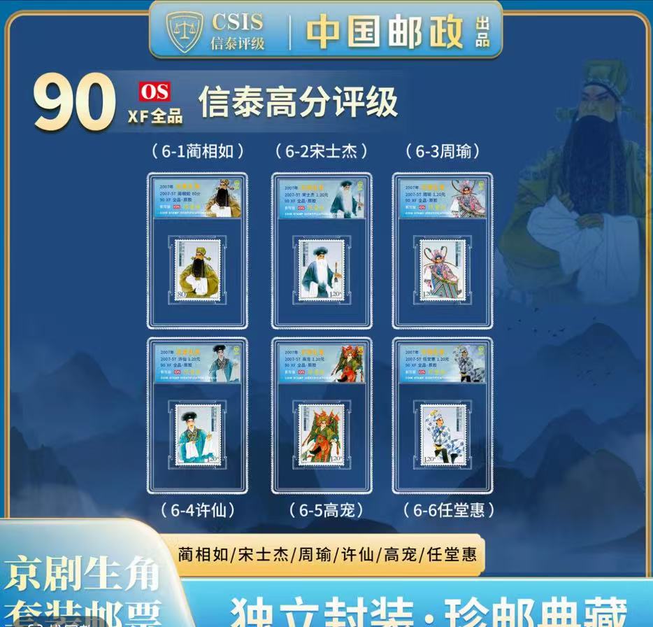 2007-5 京剧生角 套票 (一套6枚)封装评级90分