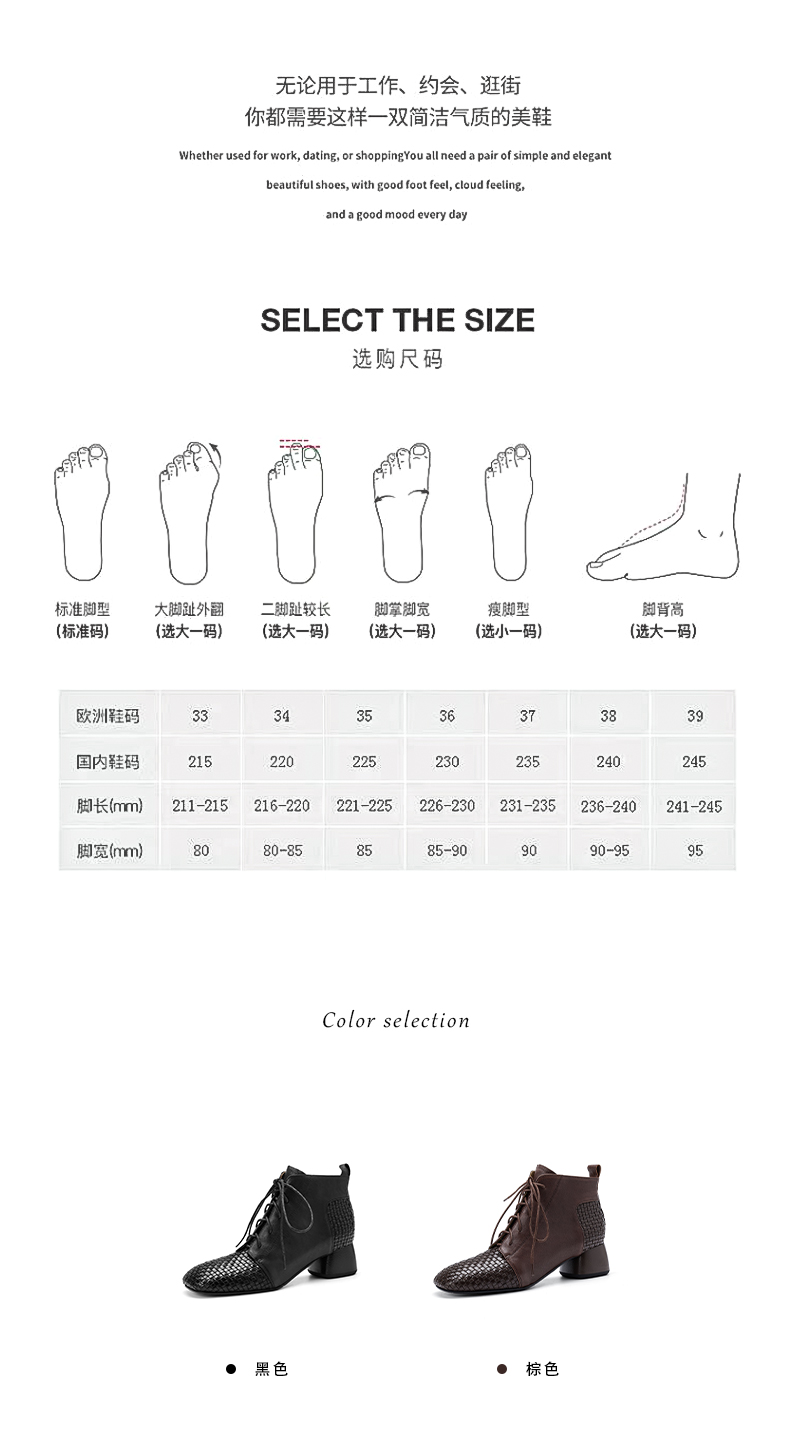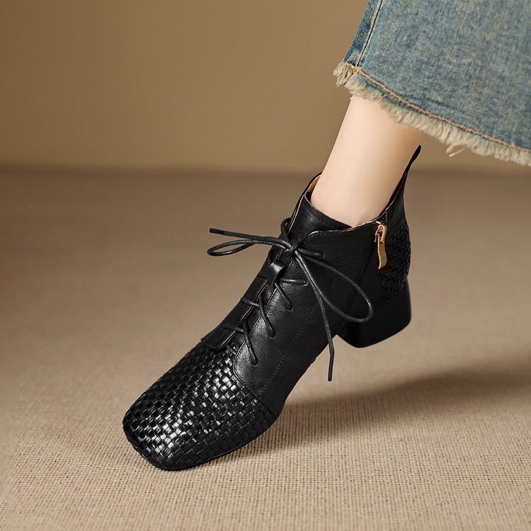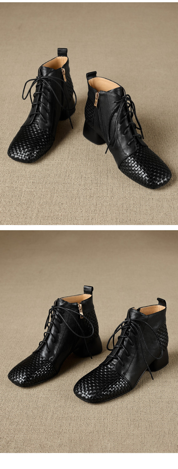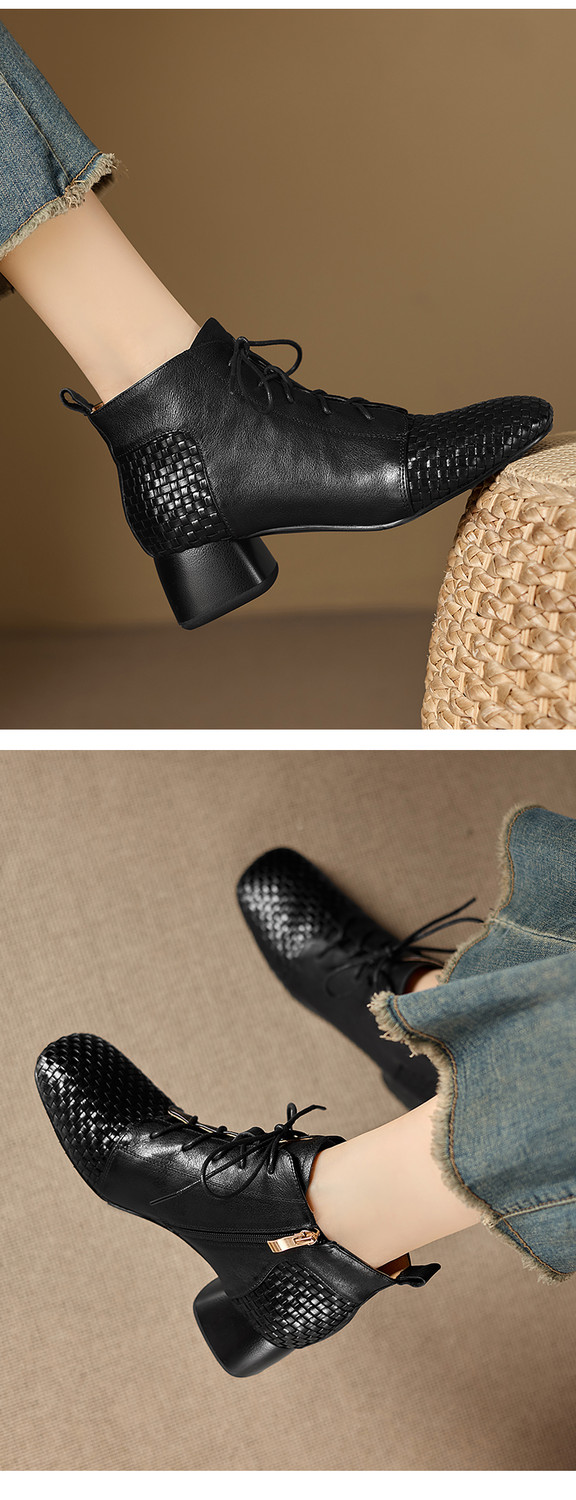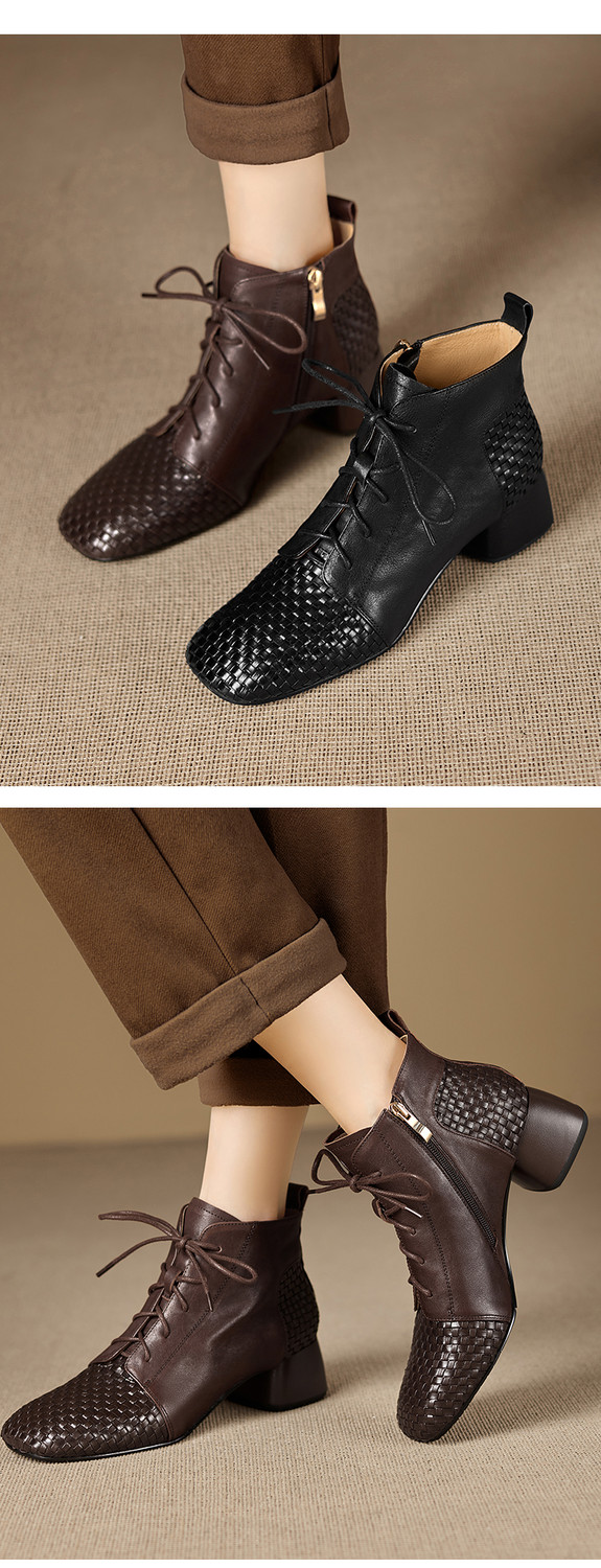 【预售5天】英伦风编织时尚高跟短靴女秋冬真皮圆头系带马丁靴气质显瘦及裸靴MBJR&5630