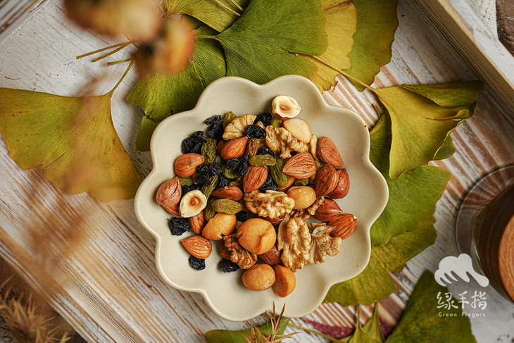 做每日坚果盒缘起于绿家卖菜部办公室的女孩们,我们好几位女孩子都喜欢常备着坚果包,打工中途饿了开一袋顶顶肚子,即方便又营养美味,如果再加上酸奶,那就是一份美美的极简早餐。