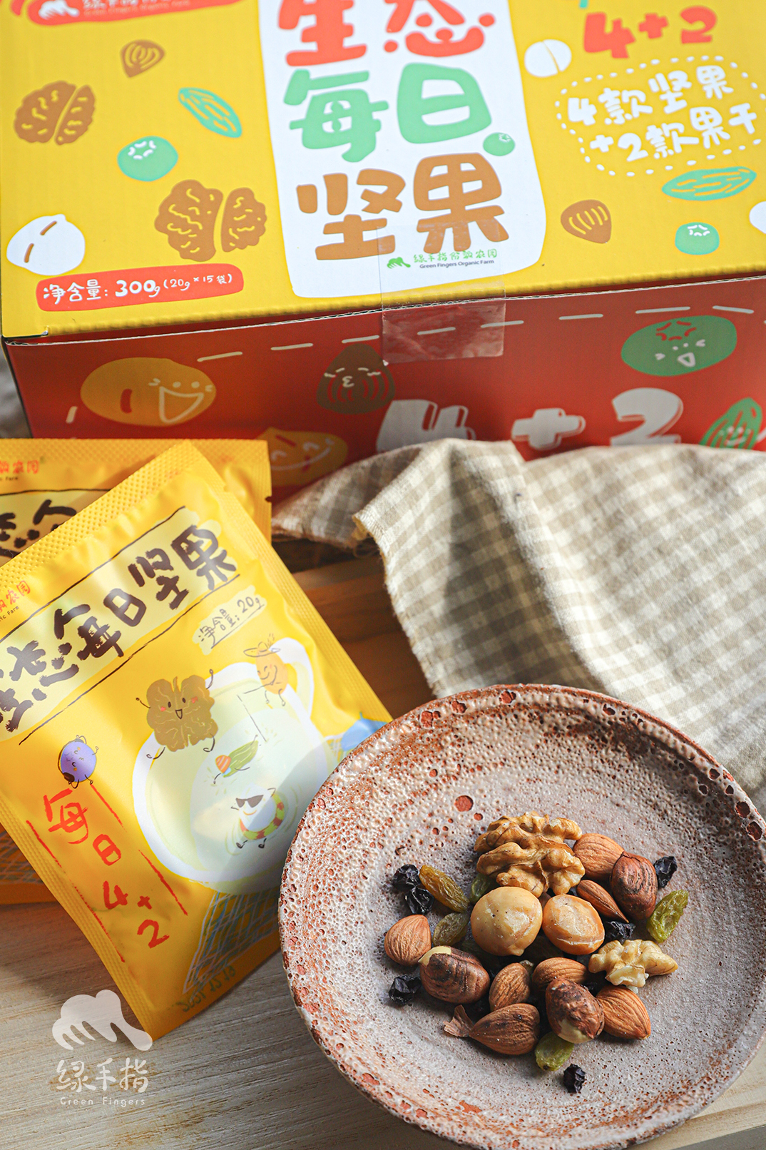 但外面买的基本达不到生态标准,而达到标准的,原料又无法完全溯源,于是为了自己能每日吃上靠谱的每日坚果努力起来了,同时经过这几年的努力,绿家长期合作的果仁果干农户也能组合成一款每日坚果盒。