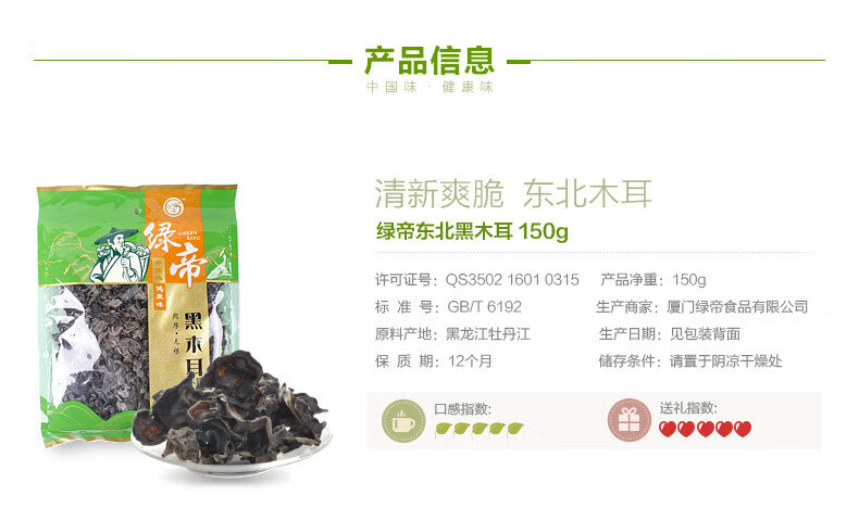 【绿帝】黑木耳东北土特产秋木耳黑木耳150g*1袋